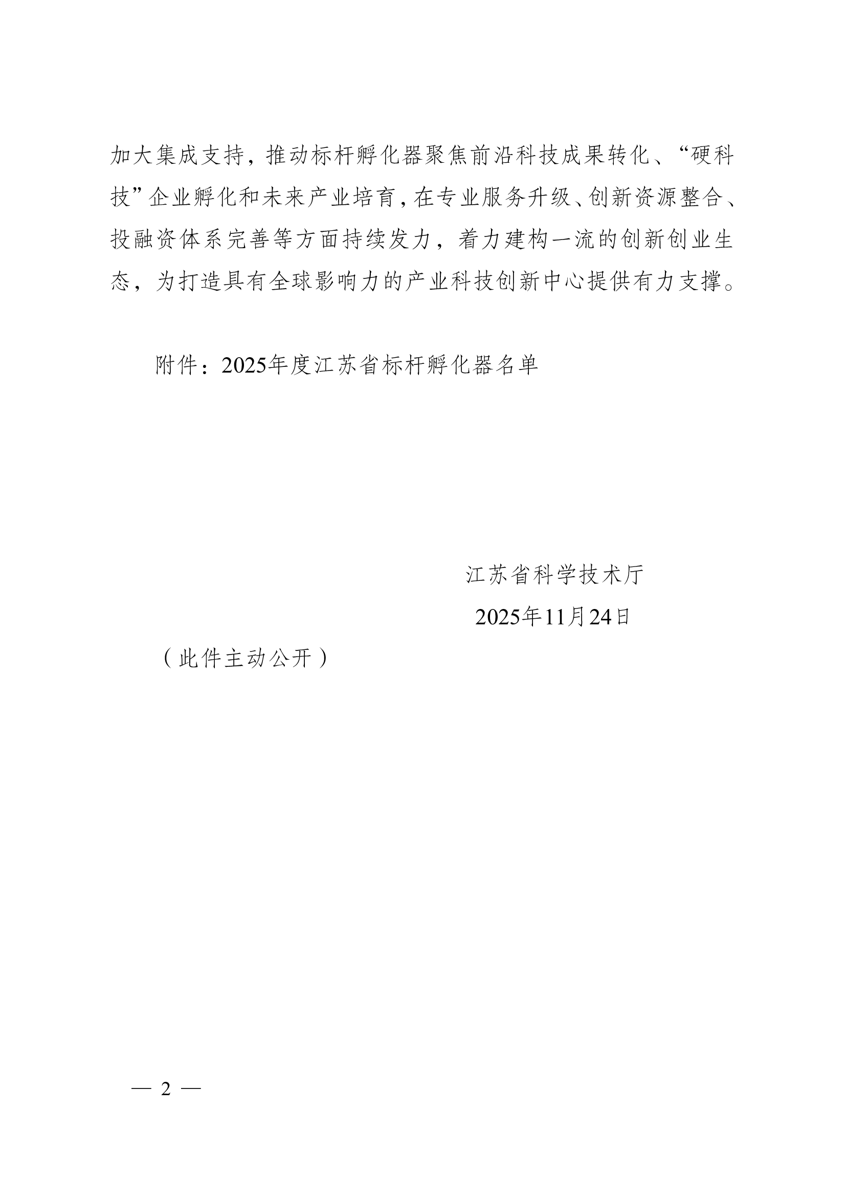 省科学技术厅关于公布2025年度江苏省标杆孵化器名单的通知.pdf