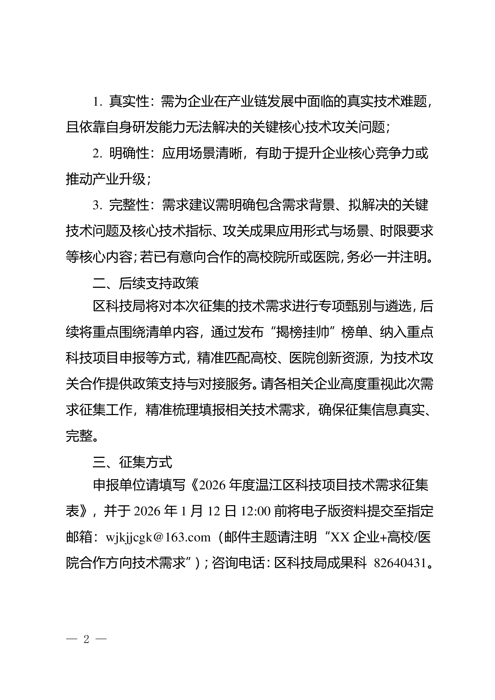 关于征集2026年度温江区“揭榜挂帅”项目需求的通知(2).doc