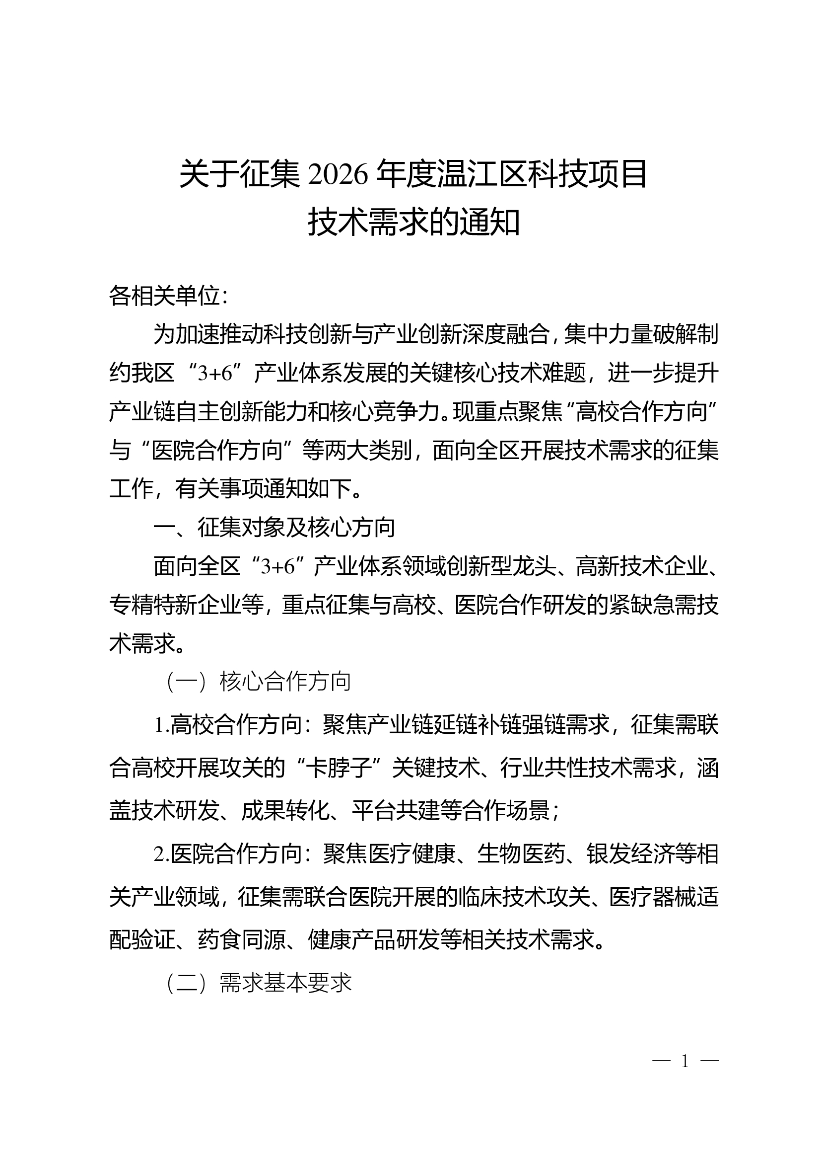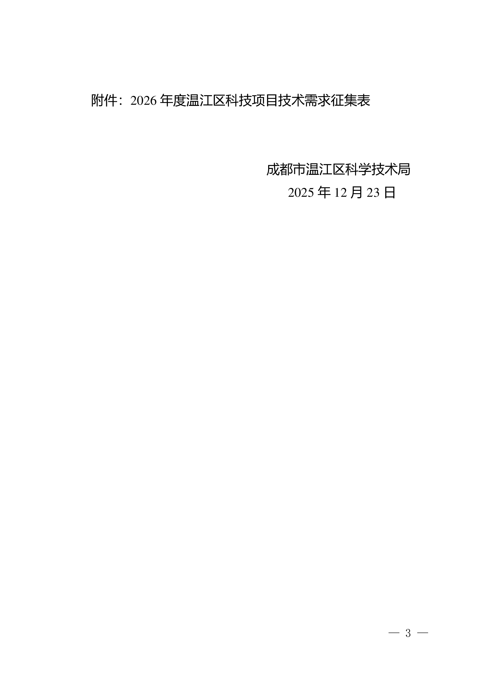 成都市温江区科学技术局关于征集2026年度温江区科技项目技术需求的通知