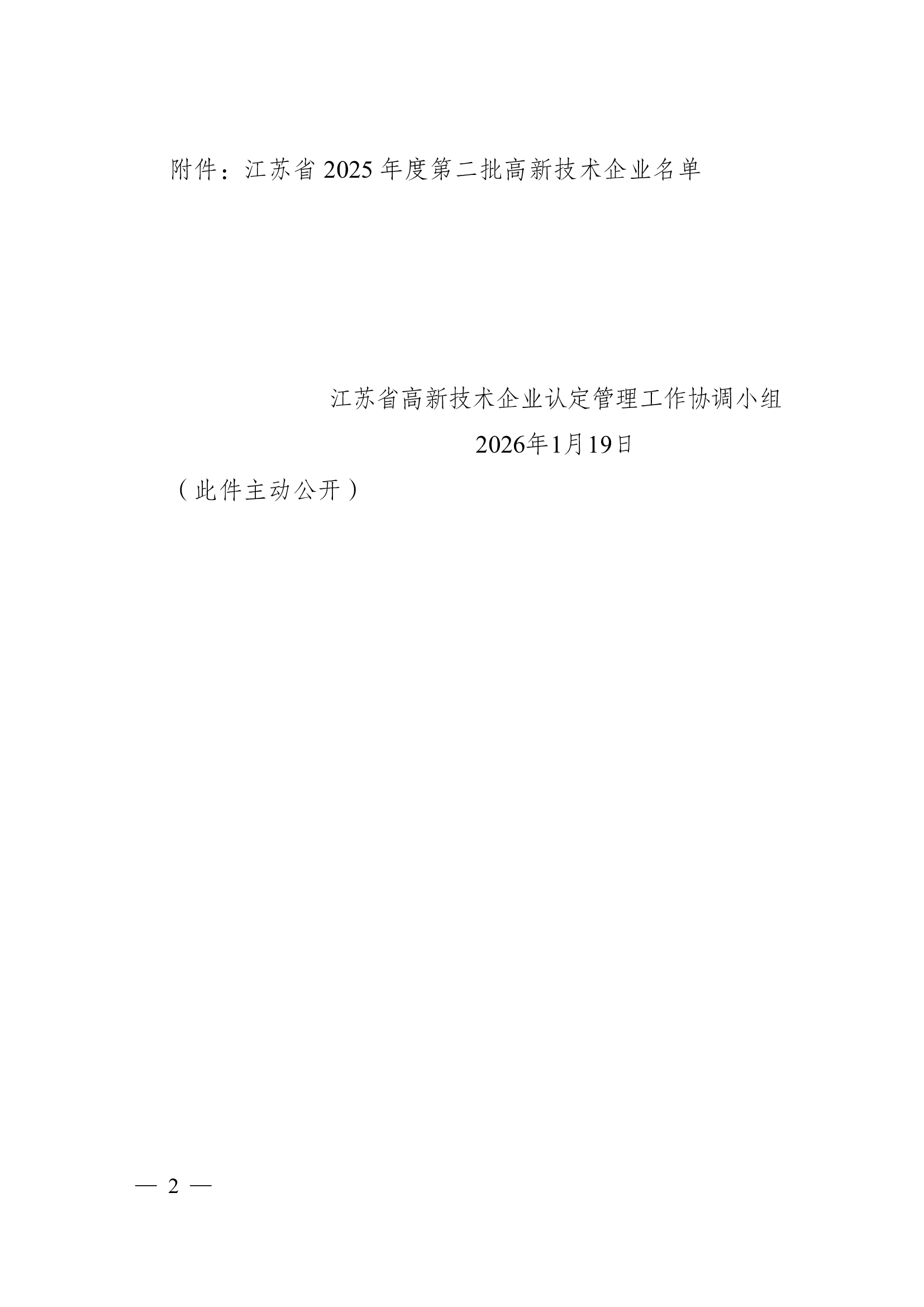 关于公布江苏省2025年度第二批高新技术企业名单的通知