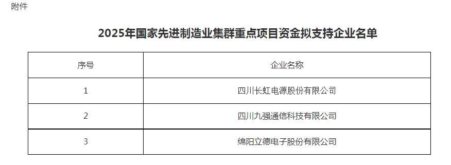 为深入贯彻落实省委、省政府关于国家先进制造业集群建设的决策部署,推动国家级集群加快向世界级跃升,有效支撑重点产业建圈强链,根据四川省经济和信息化厅《关于做好2025年国家先进制造业集群重点项目相关工作的通知》(川经信办函〔2025〕393号)文件要求,我局组织开展了2025年国家先进制造业集群项目申报工作。按照企业申报、专家评审、现场核查等流程,经局项目联审会审查、局务会研究、党组会审议通过。现将拟支持的企业名单予以公示。