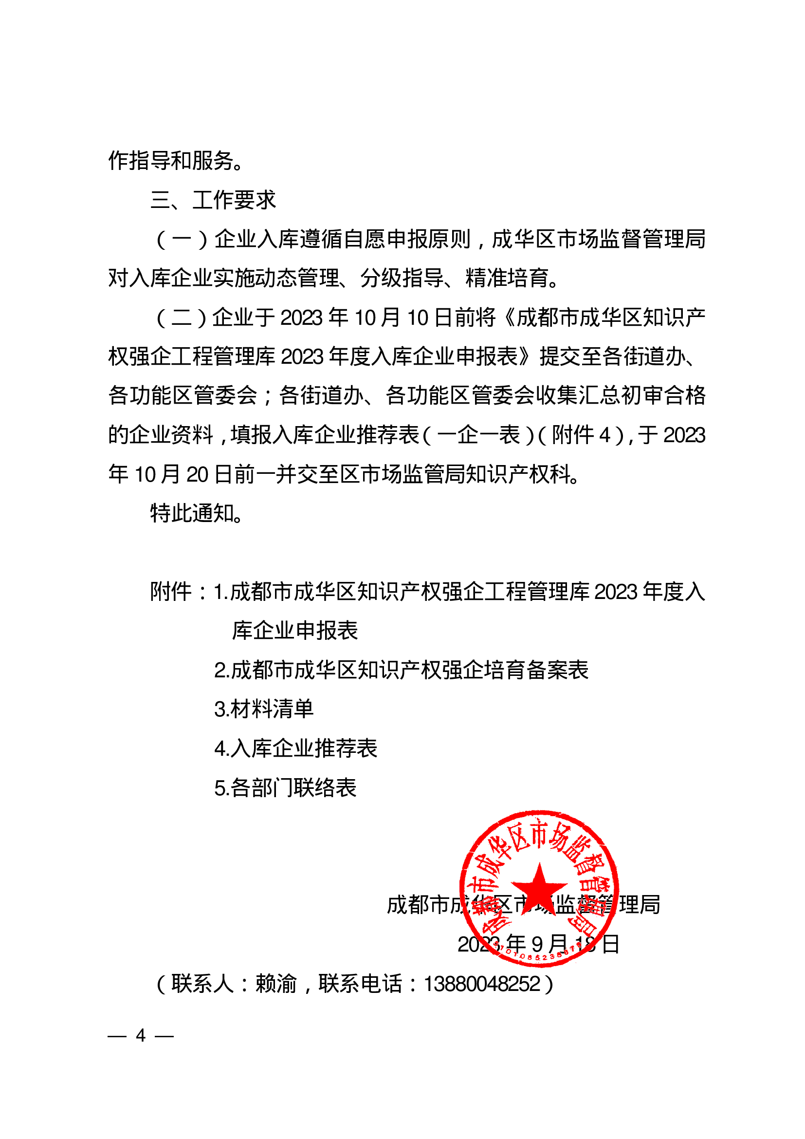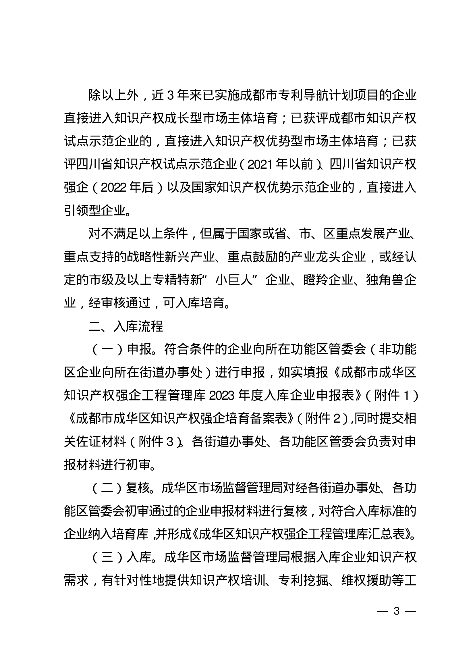 成都市成华区市场监督管理局 关于开展2023年知识产权强企入库培育的通知