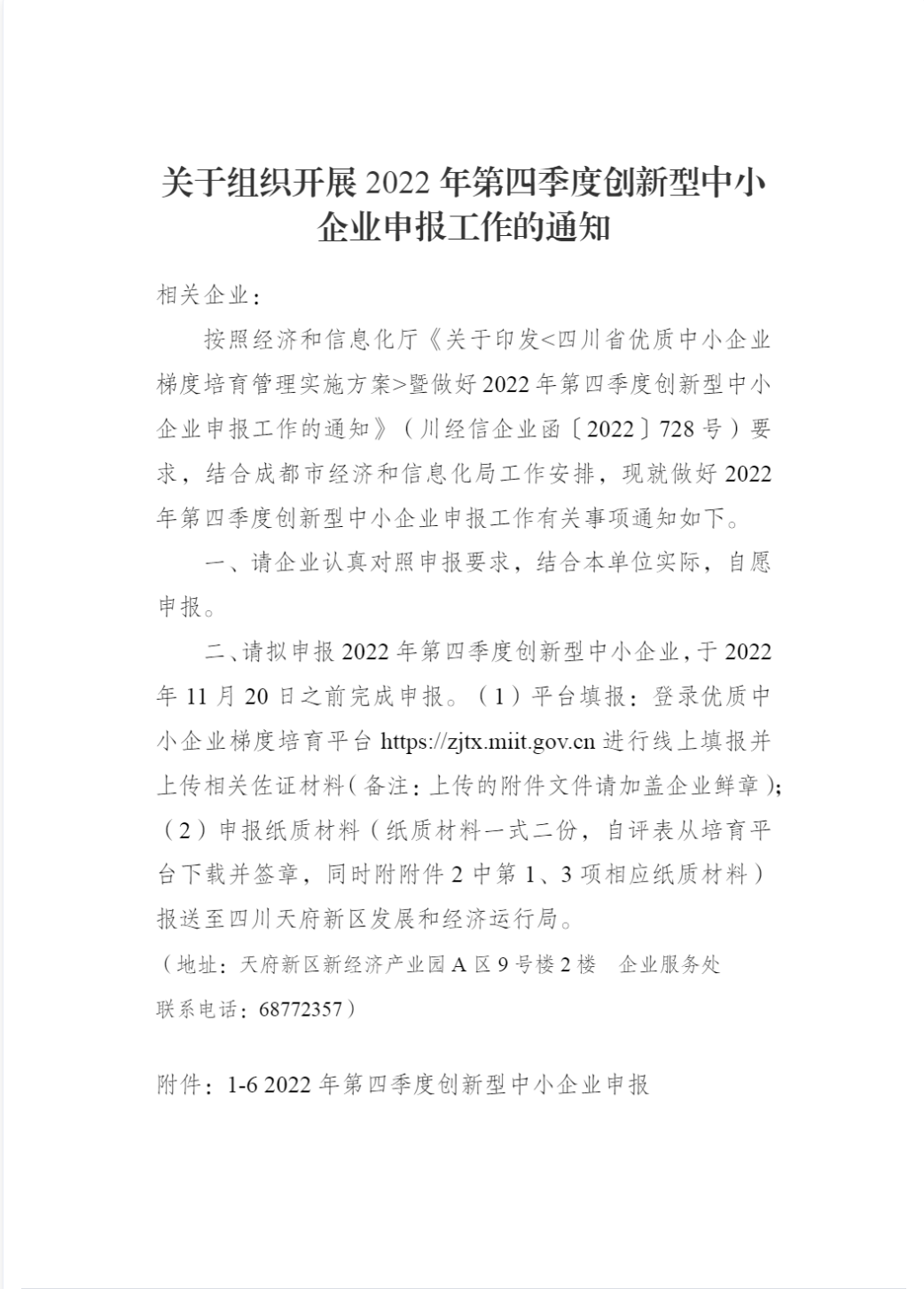 天府新区:关于组织开展2022年第四季度创新型中小企业申报工作的通知