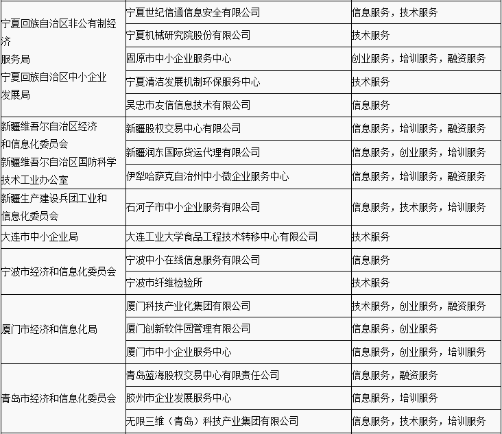 根据工业和信息化部《国家中小企业公共服务示范平台认定管理办法》(工信部企业〔2017〕156号)和《工业和信息化部办公厅关于推荐2017年度国家中小企业公共服务示范平台的通知》(工信厅企业函〔2018〕172号),经评审和公示,确定了2018年度国家中小企业公共服务示范平台(以下简称示范平台)名单,现予公布。有关事项通告如下: