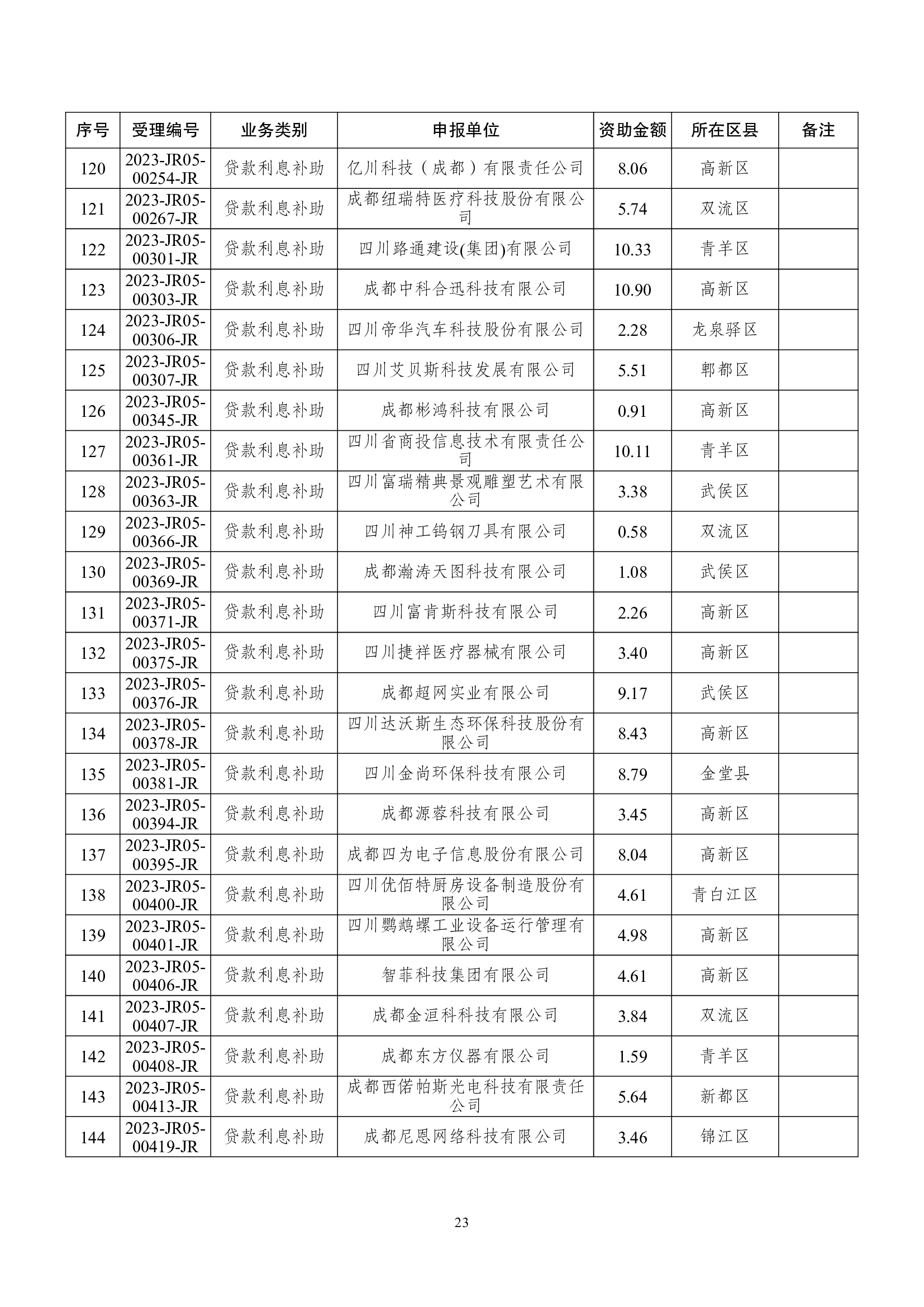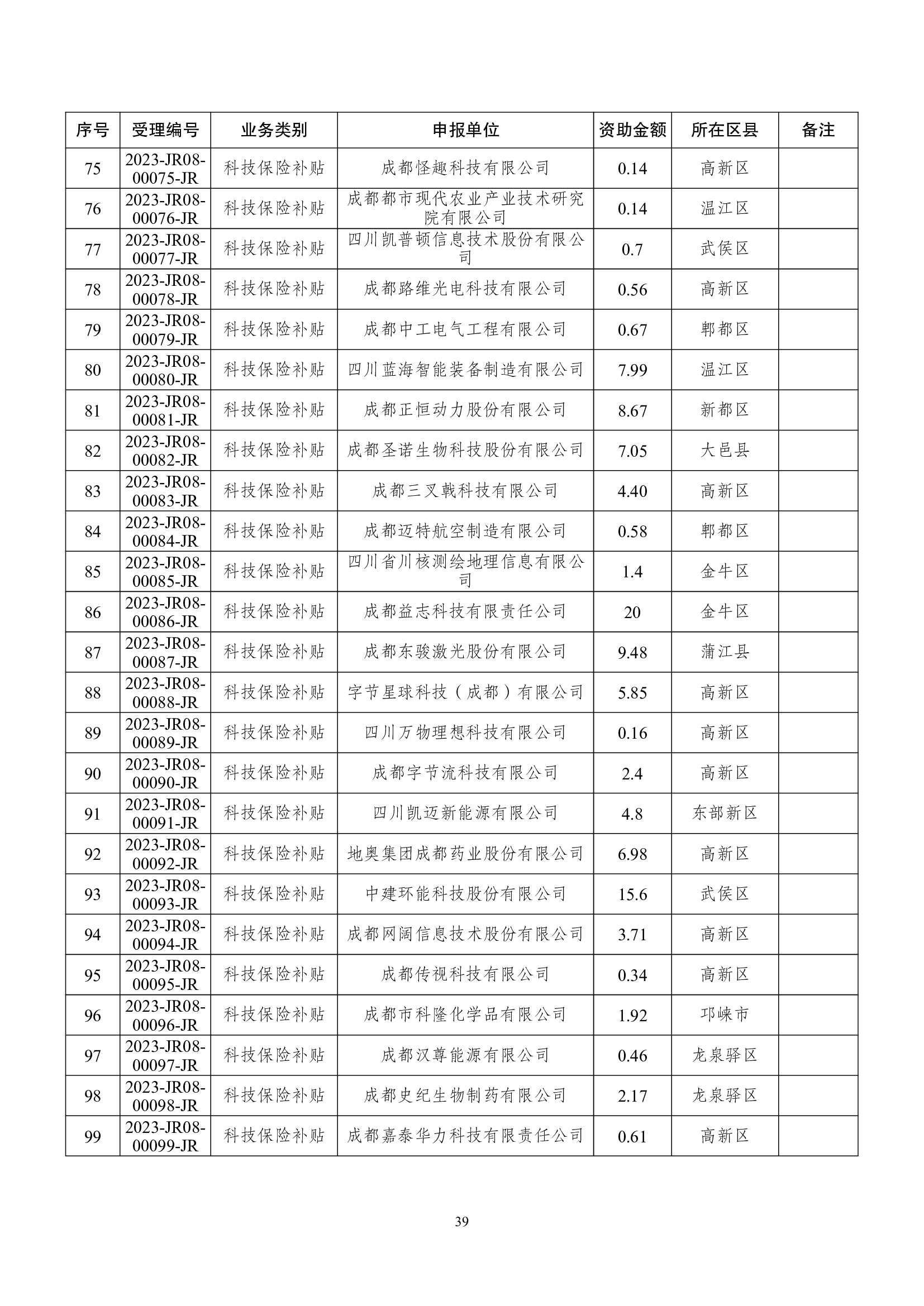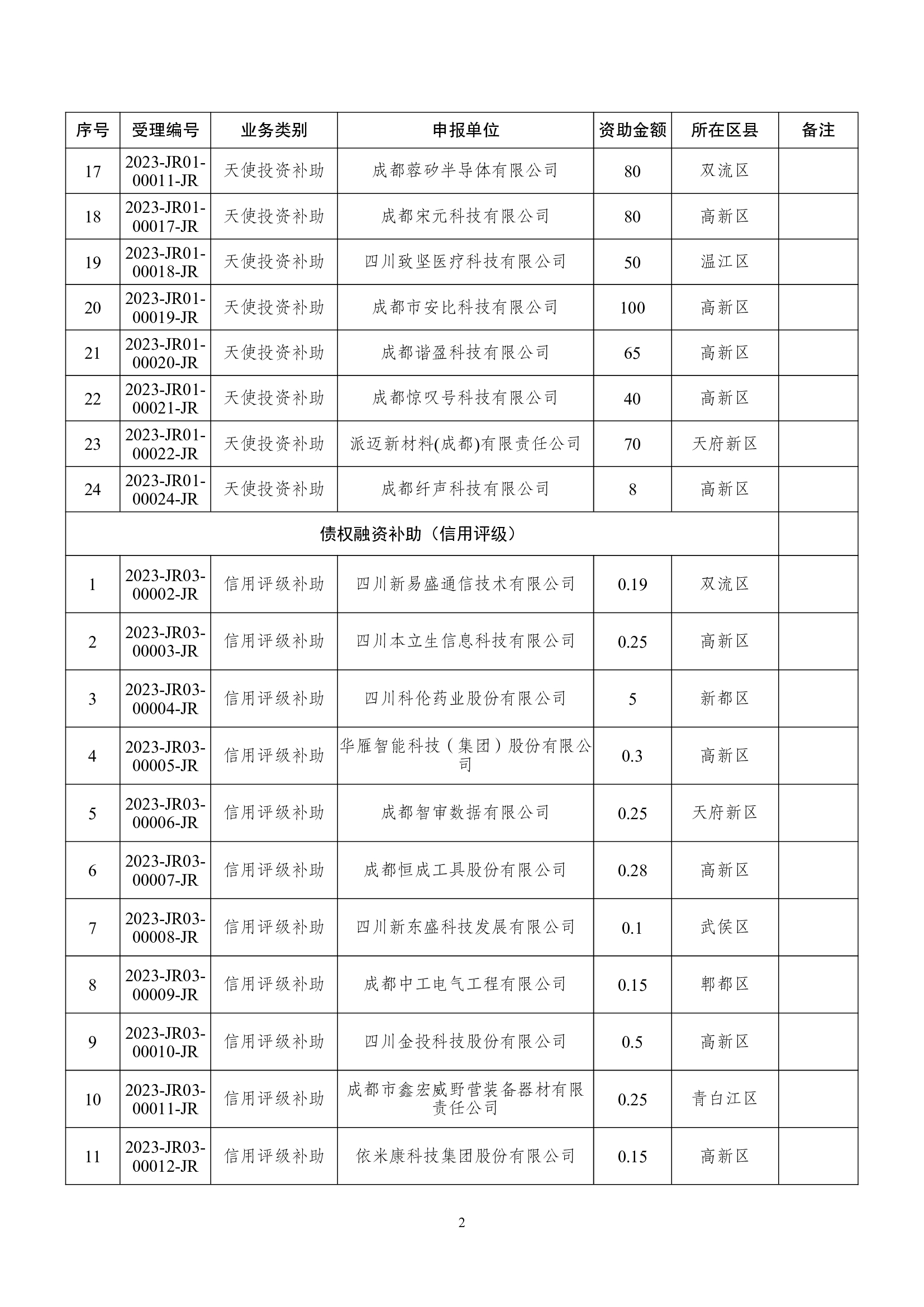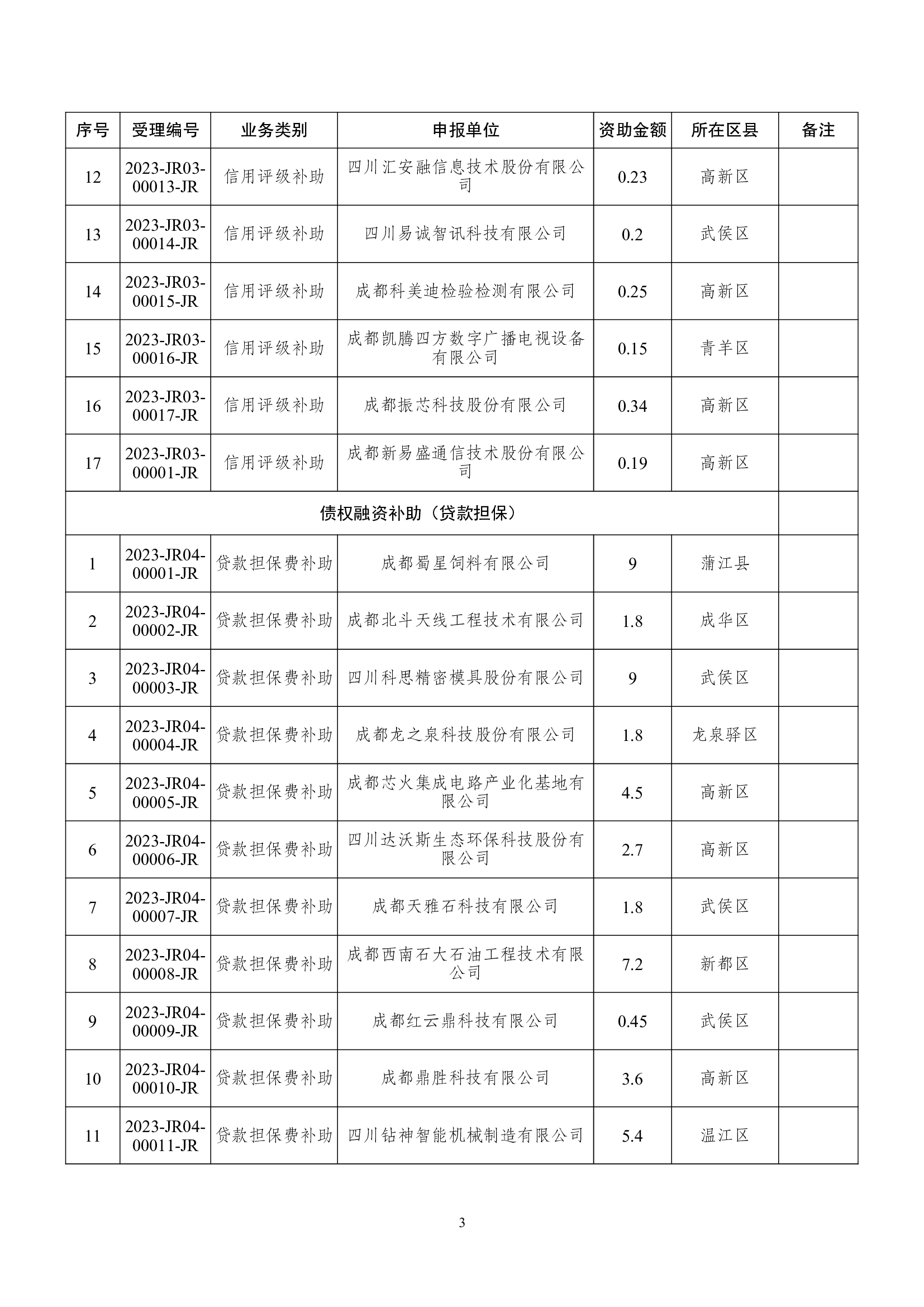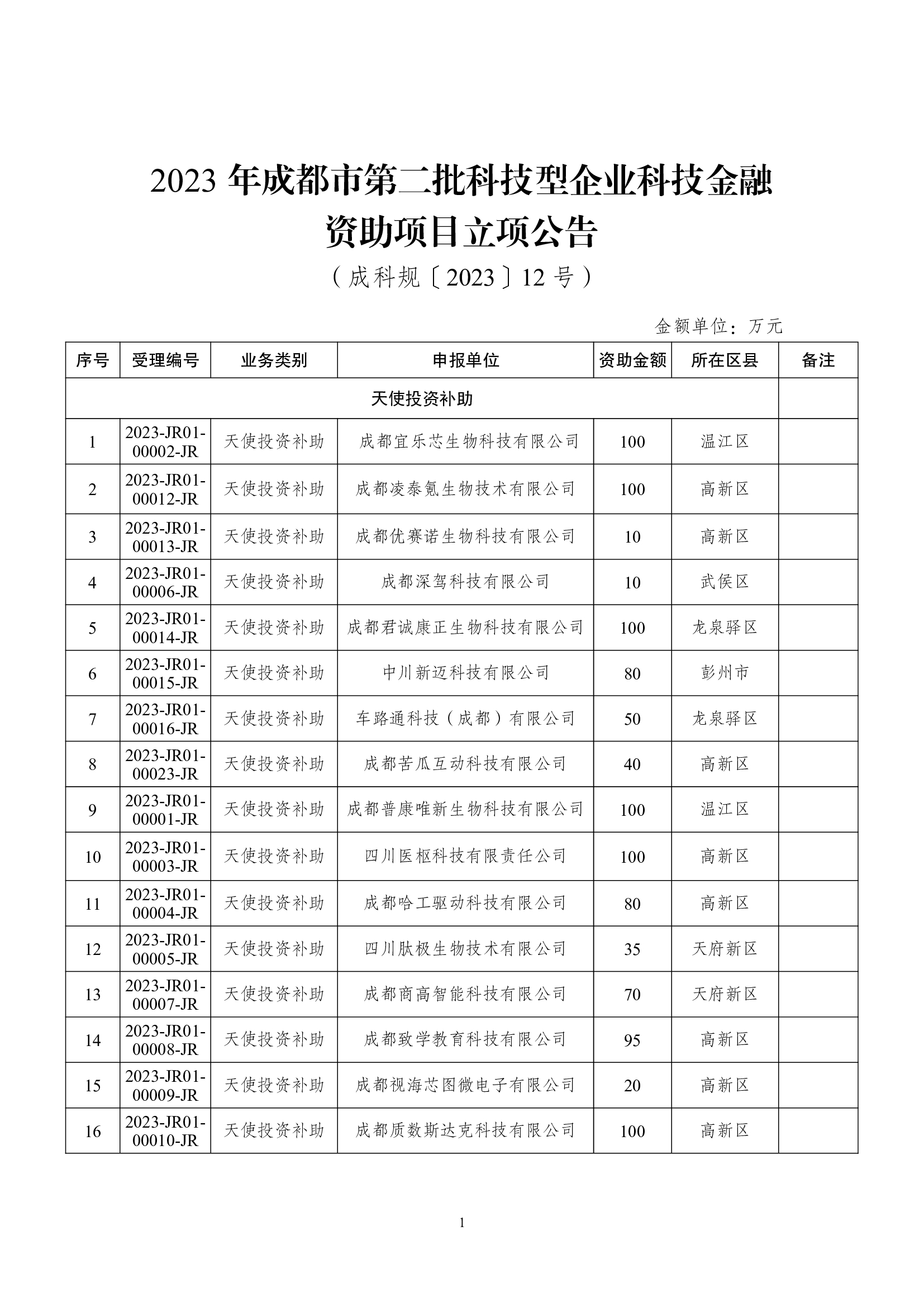 2023年成都市第二批科技型企业科技金融资助项目立项公告(成科规〔2023〕12号)
