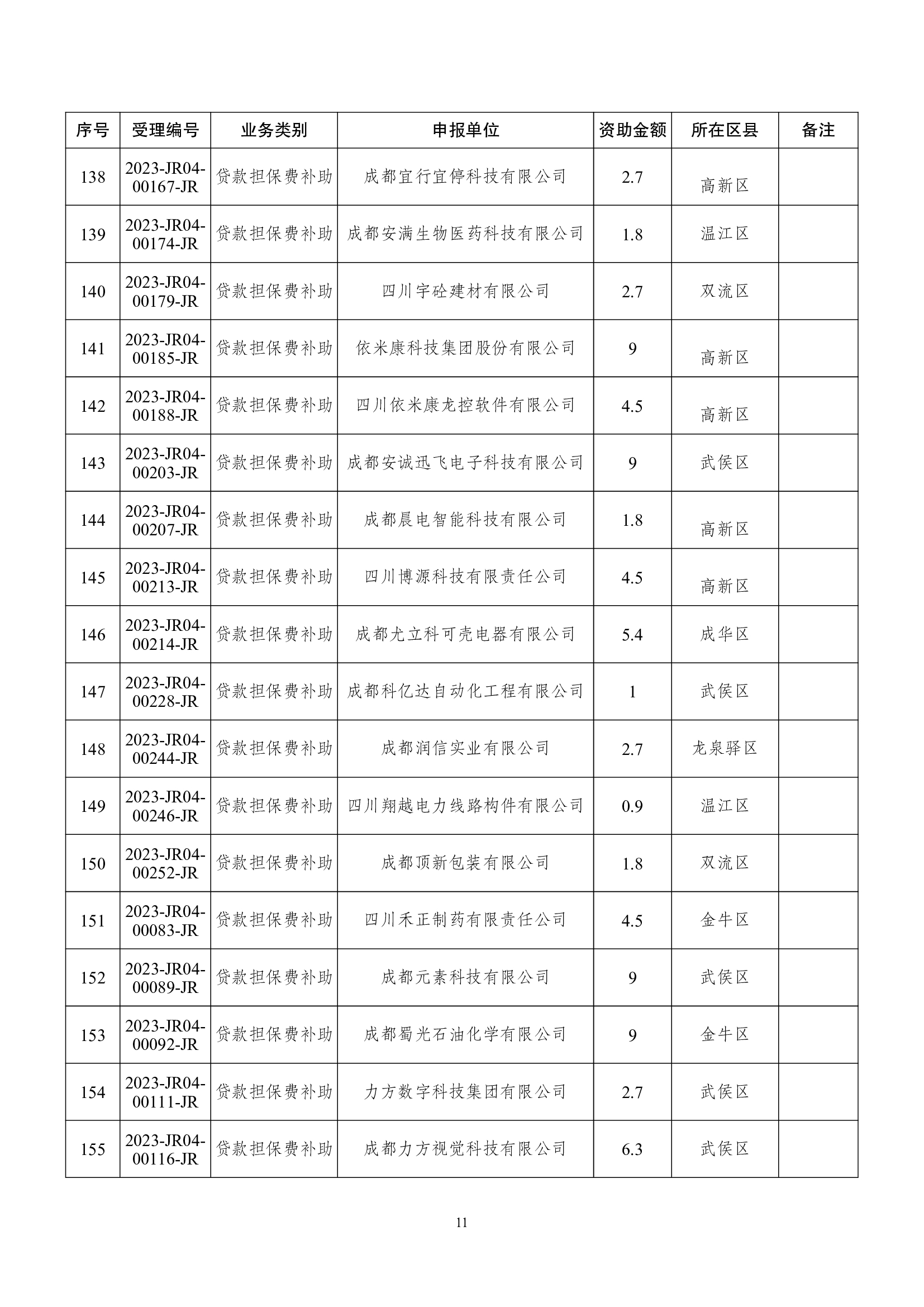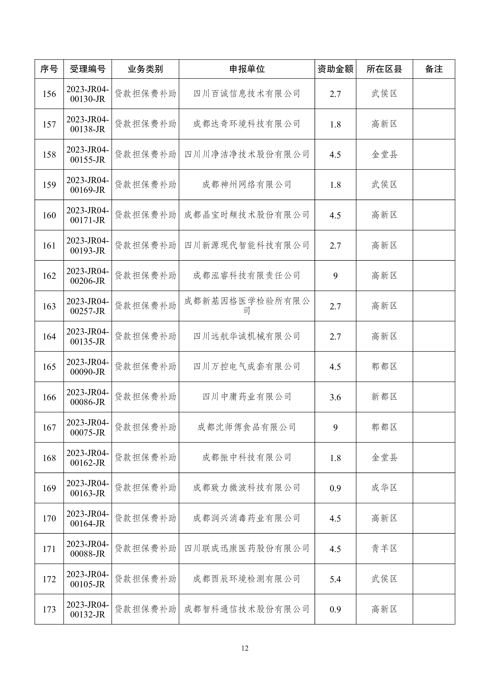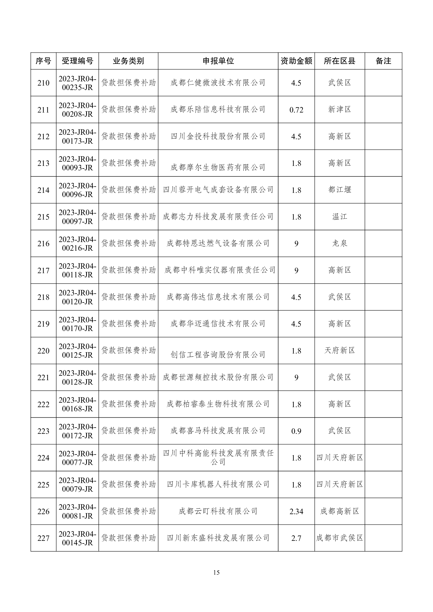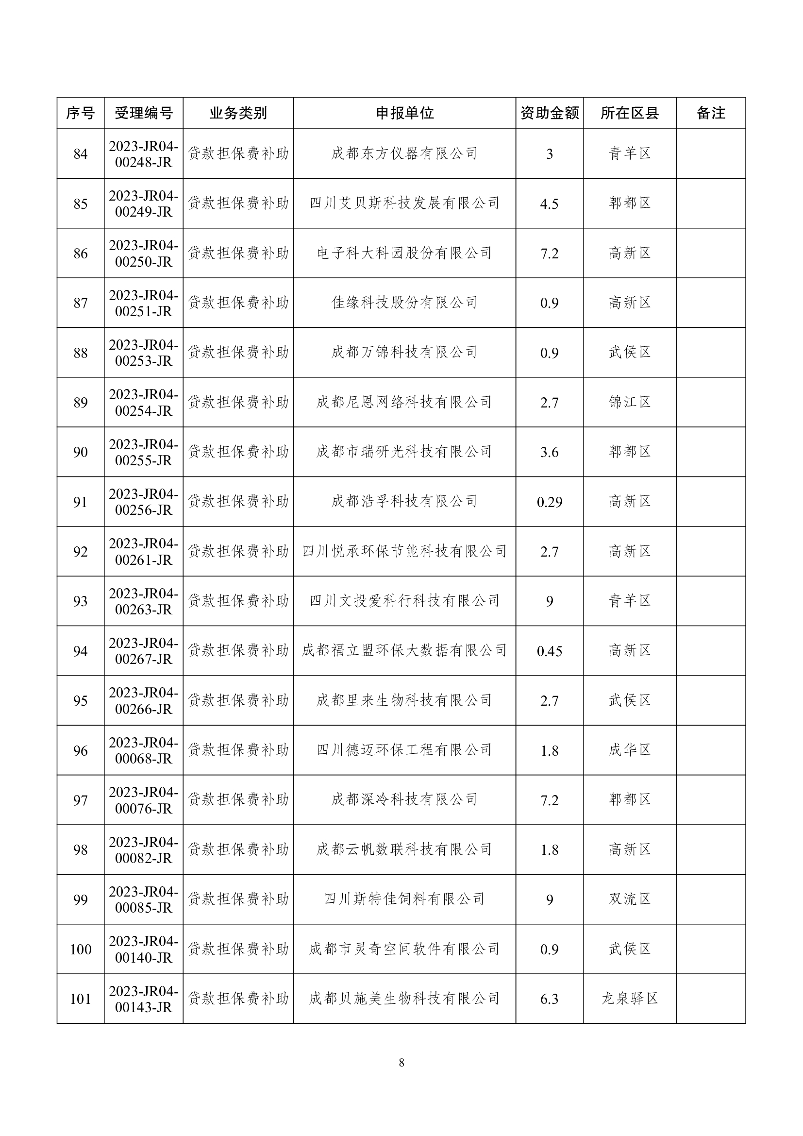 2023年成都市第二批科技型企业科技金融资助项目立项公告(成科规〔2023〕12号)