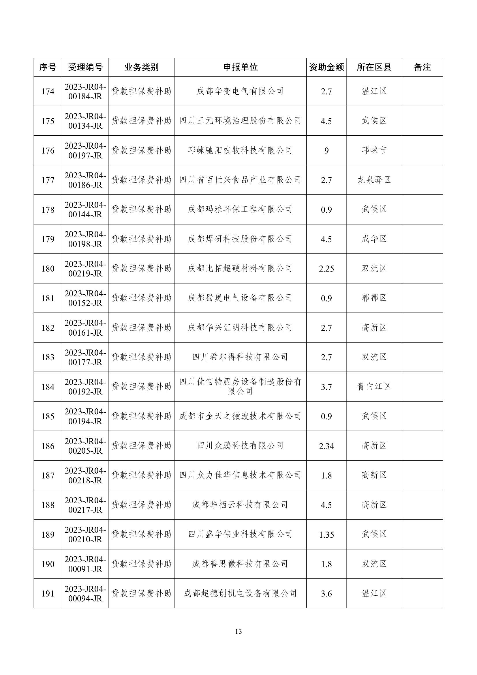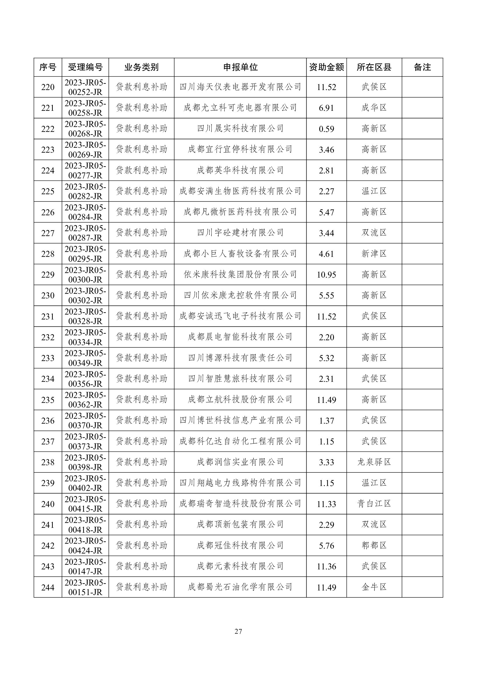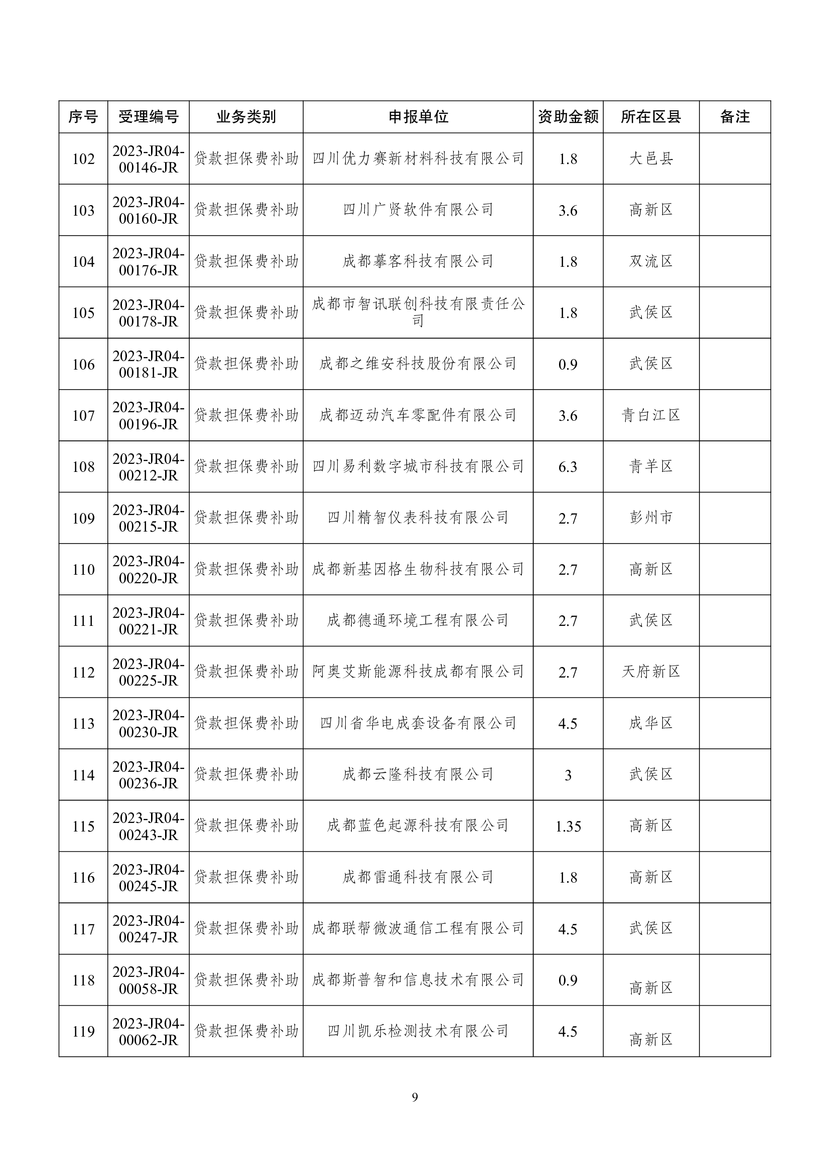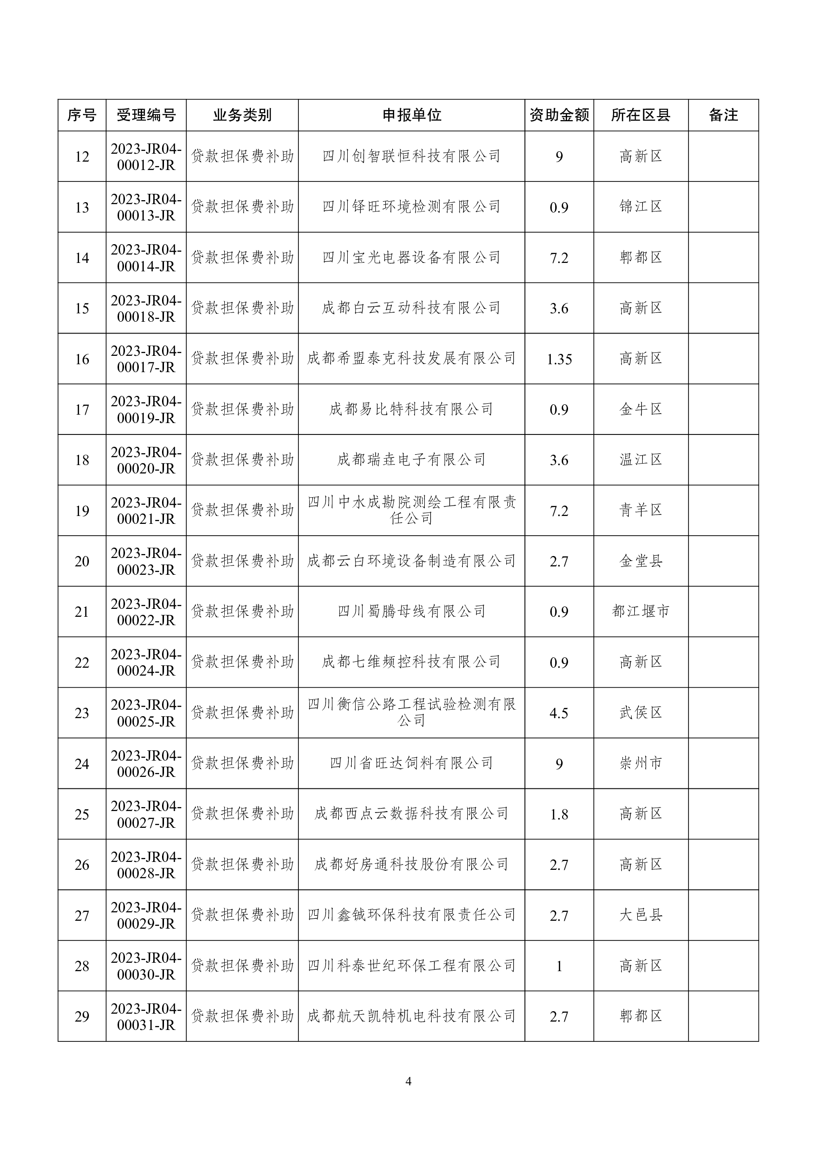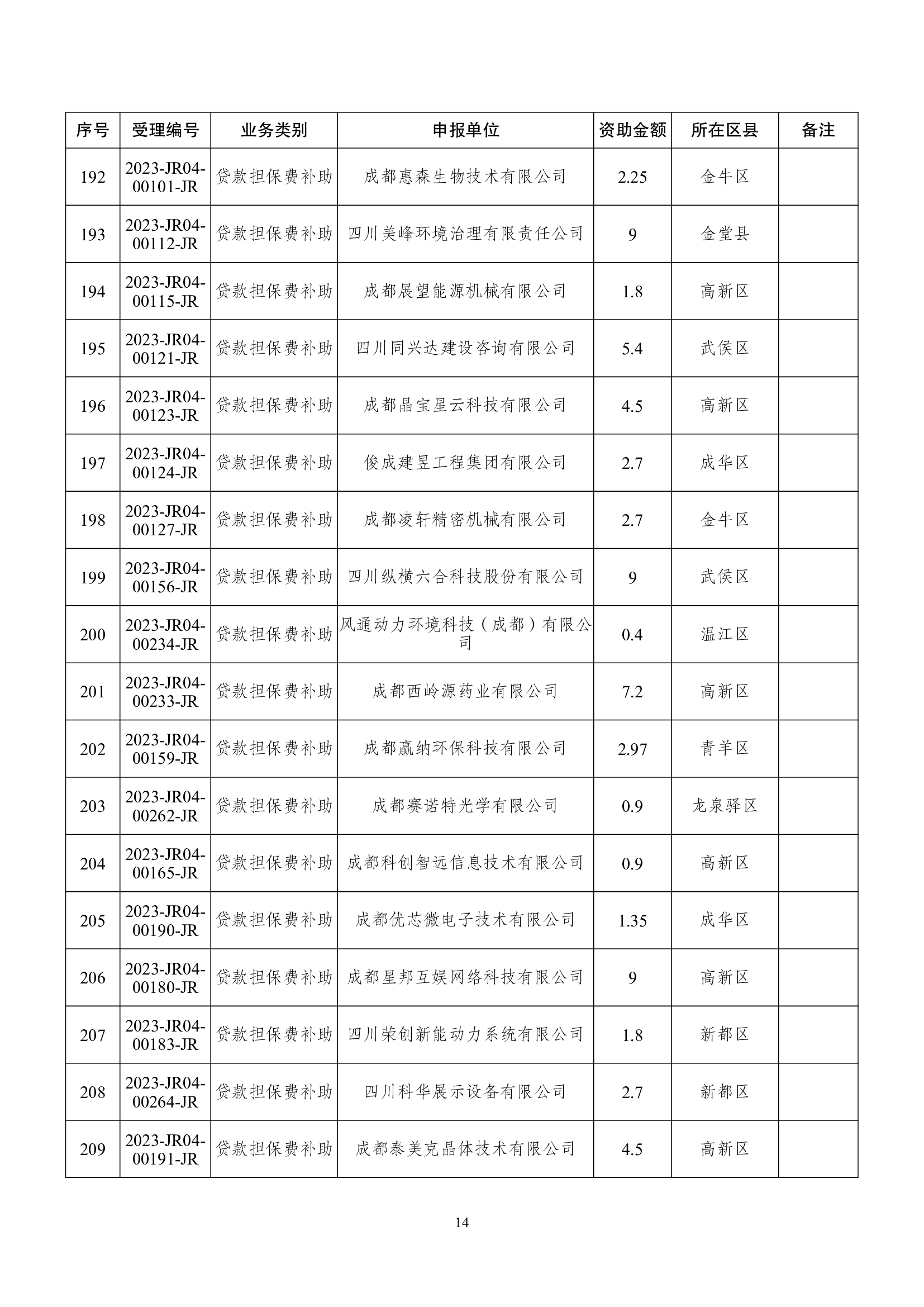 2023年成都市第二批科技型企业科技金融资助项目立项公告(成科规〔2023〕12号)