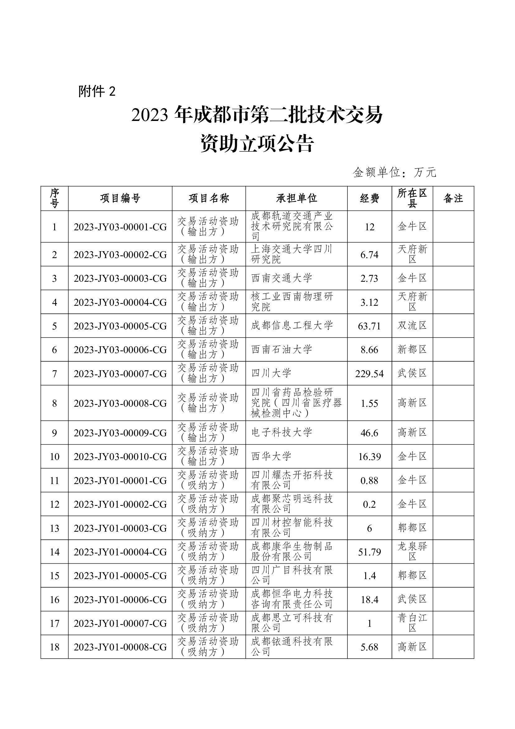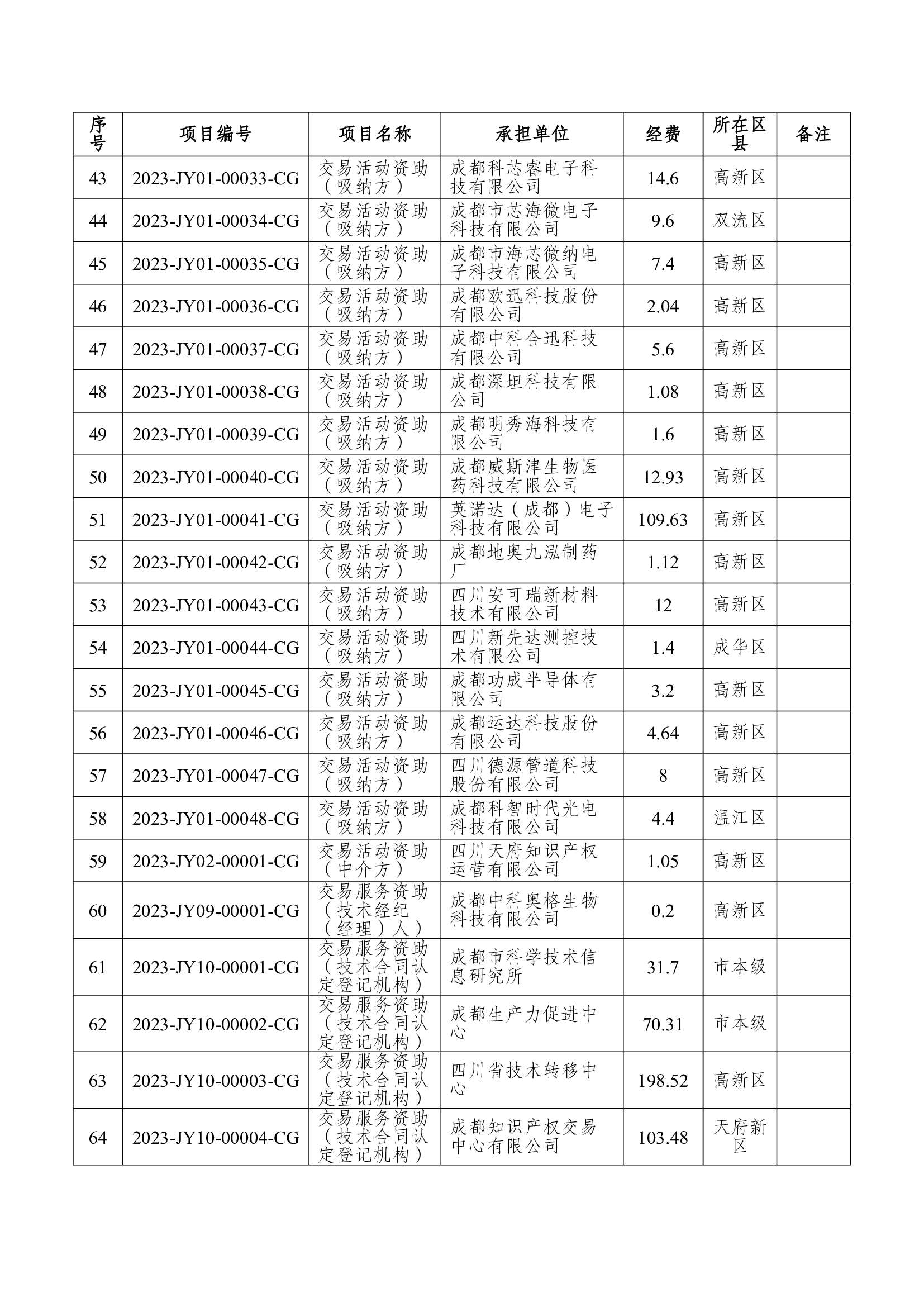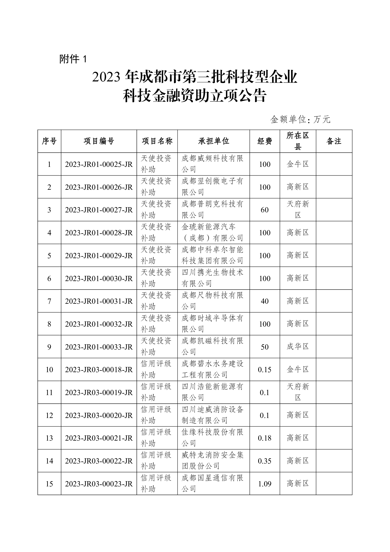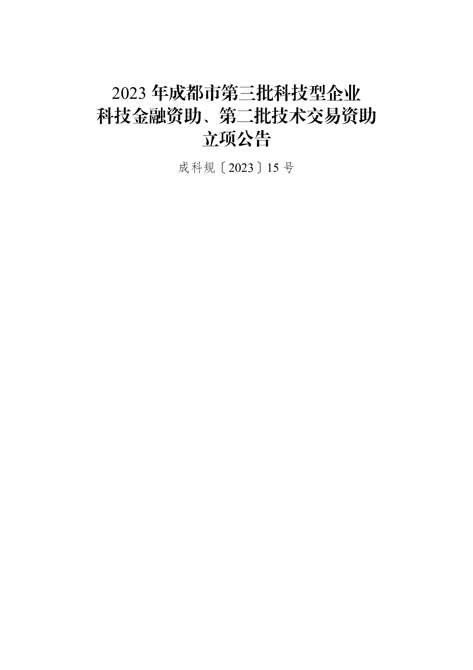 2023年成都市第三批科技型企业科技金融资助、第二批技术交易资助立项公告(成科规〔2023〕15号)