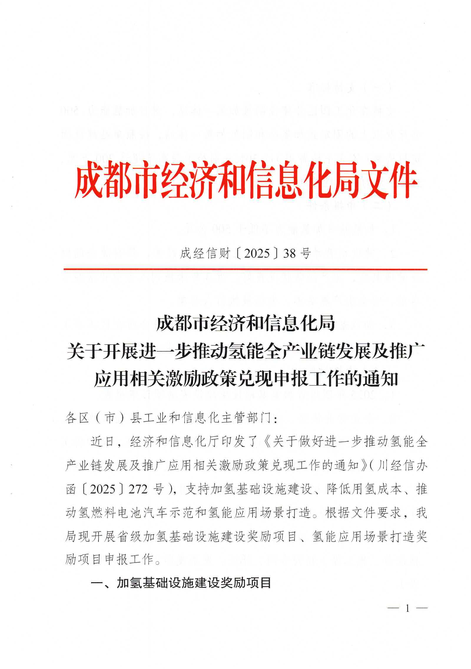 成都市经济和信息化局 关于开展进一步推动氢能全产业链发展及推广应用相关激励政策兑现申报工作的通知