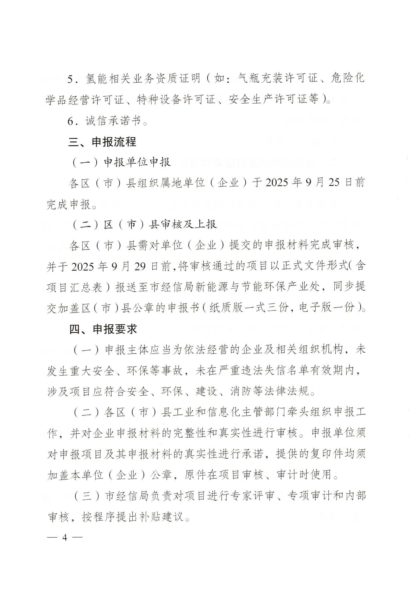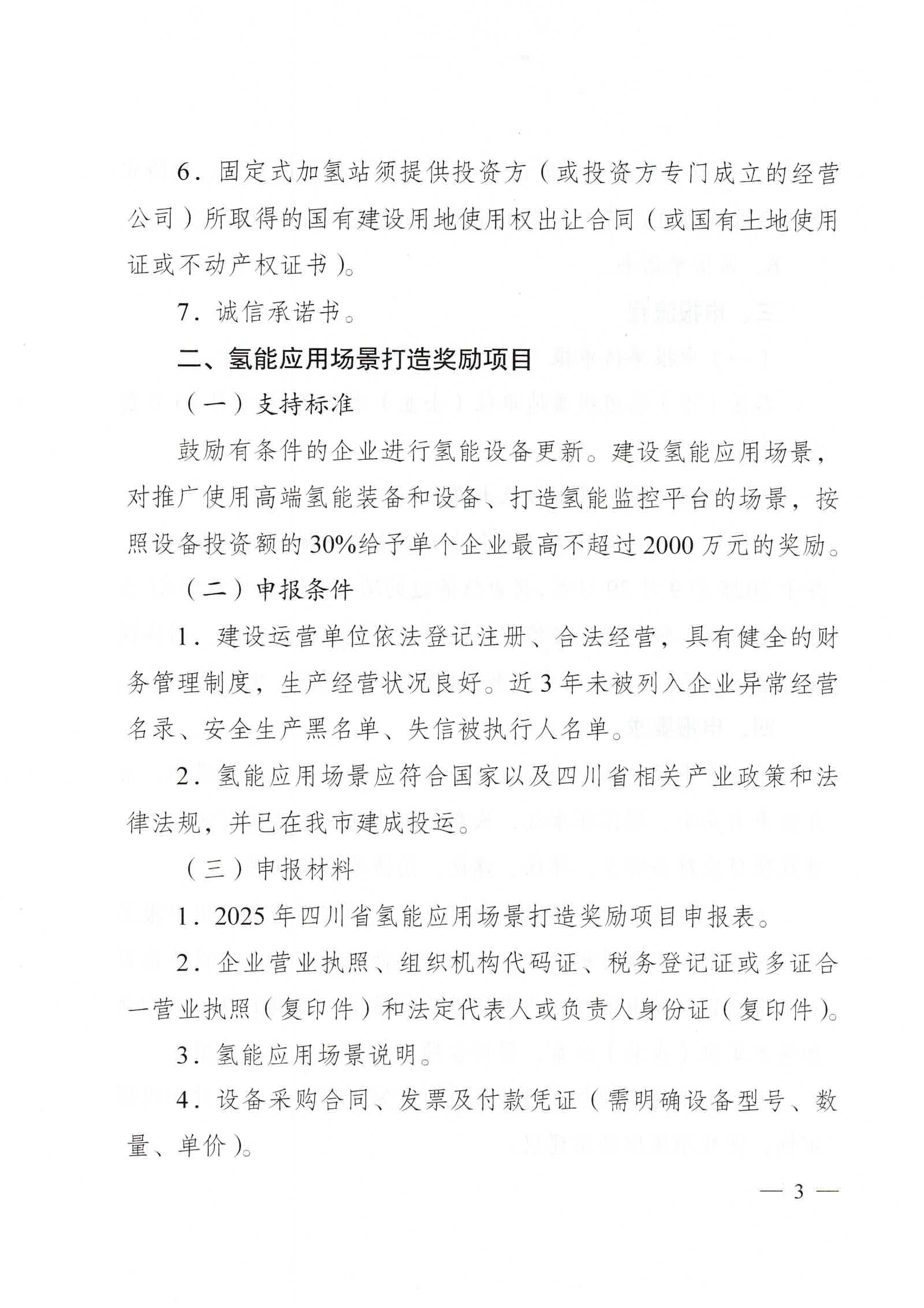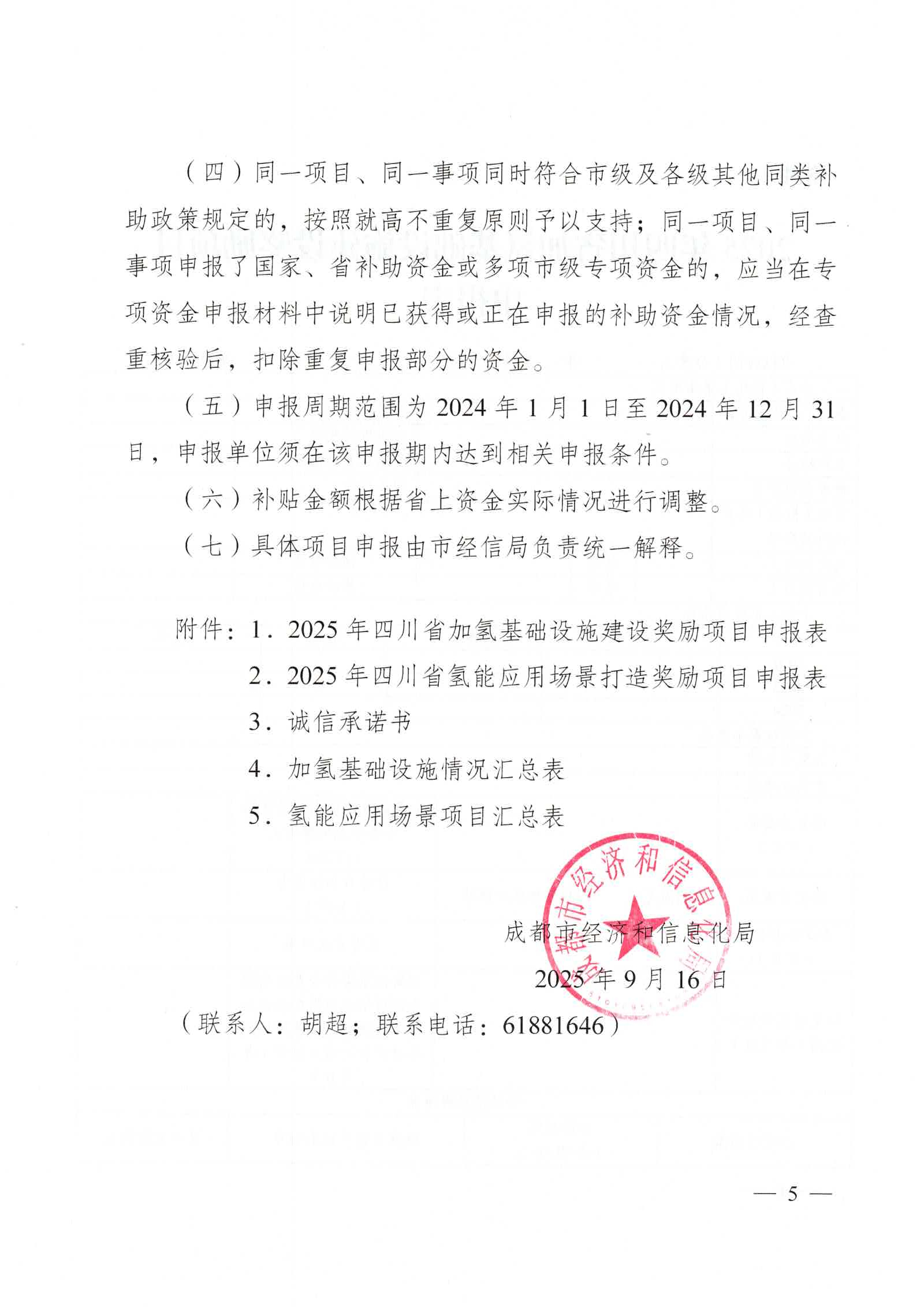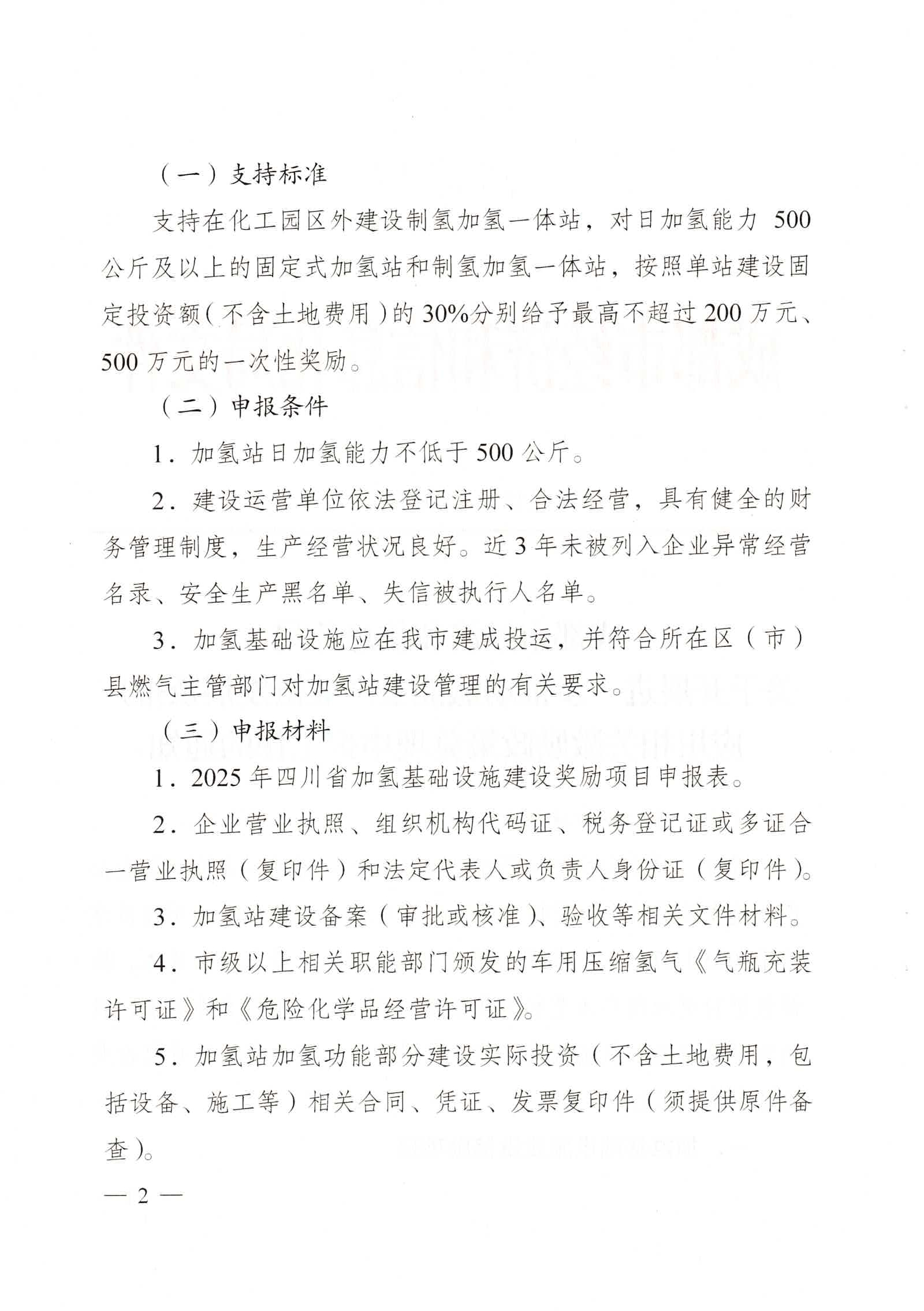 近日,经济和信息化厅印发了《关于做好进一步推动氢能全产业链发展及推广应用相关激励政策兑现工作的通知》(川经信办函〔2025〕272号),支持加氢基础设施建设、降低用氢成本、推动氢燃料电池汽车示范和氢能应用场景打造。根据文件要求,我局现开展省级加氢基础设施建设奖励项目、氢能应用场景打造奖励项目申报工作。
