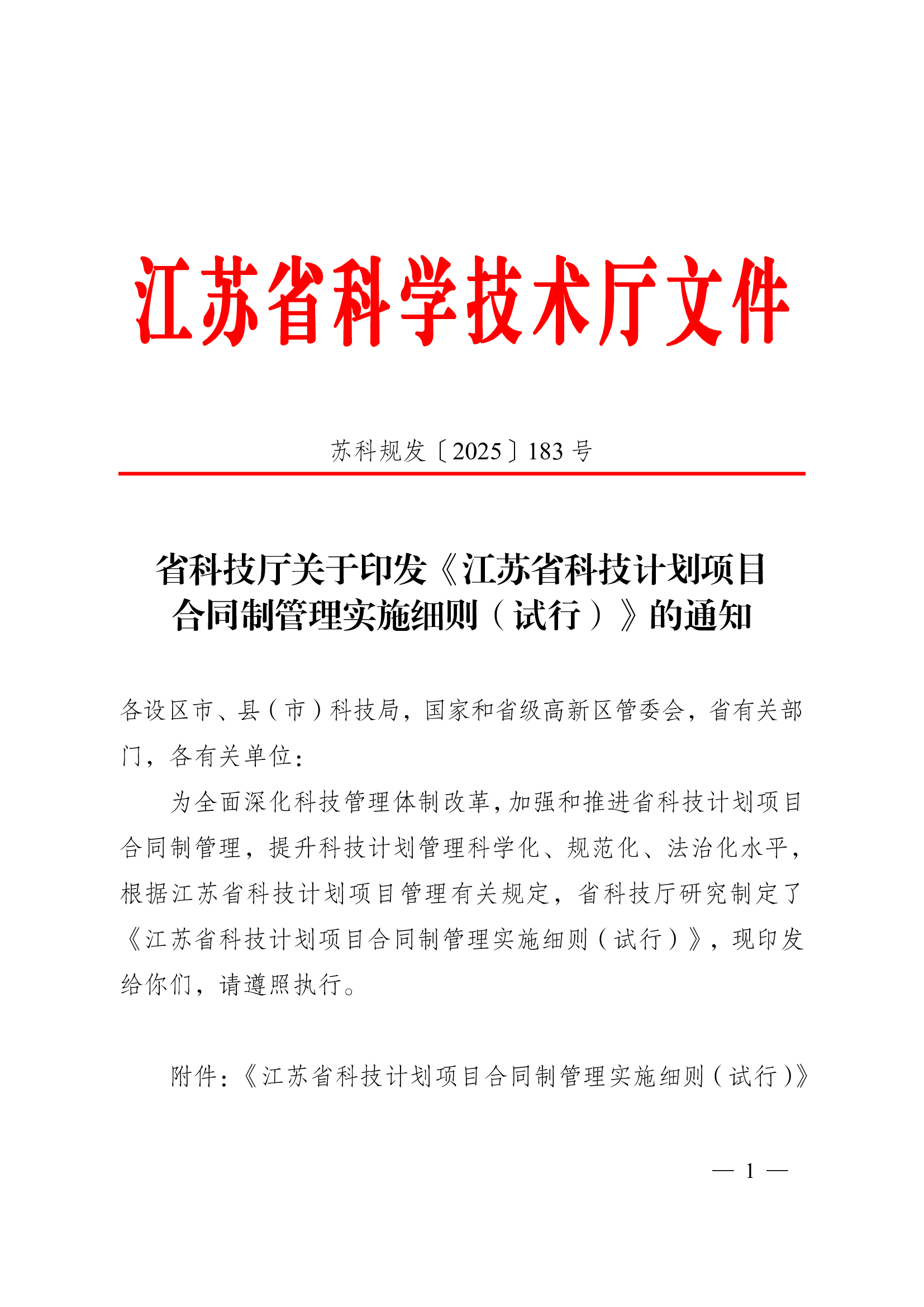 省科技厅关于印发《江苏省科技计划项目合同制管理实施细则(试行)》的通知
