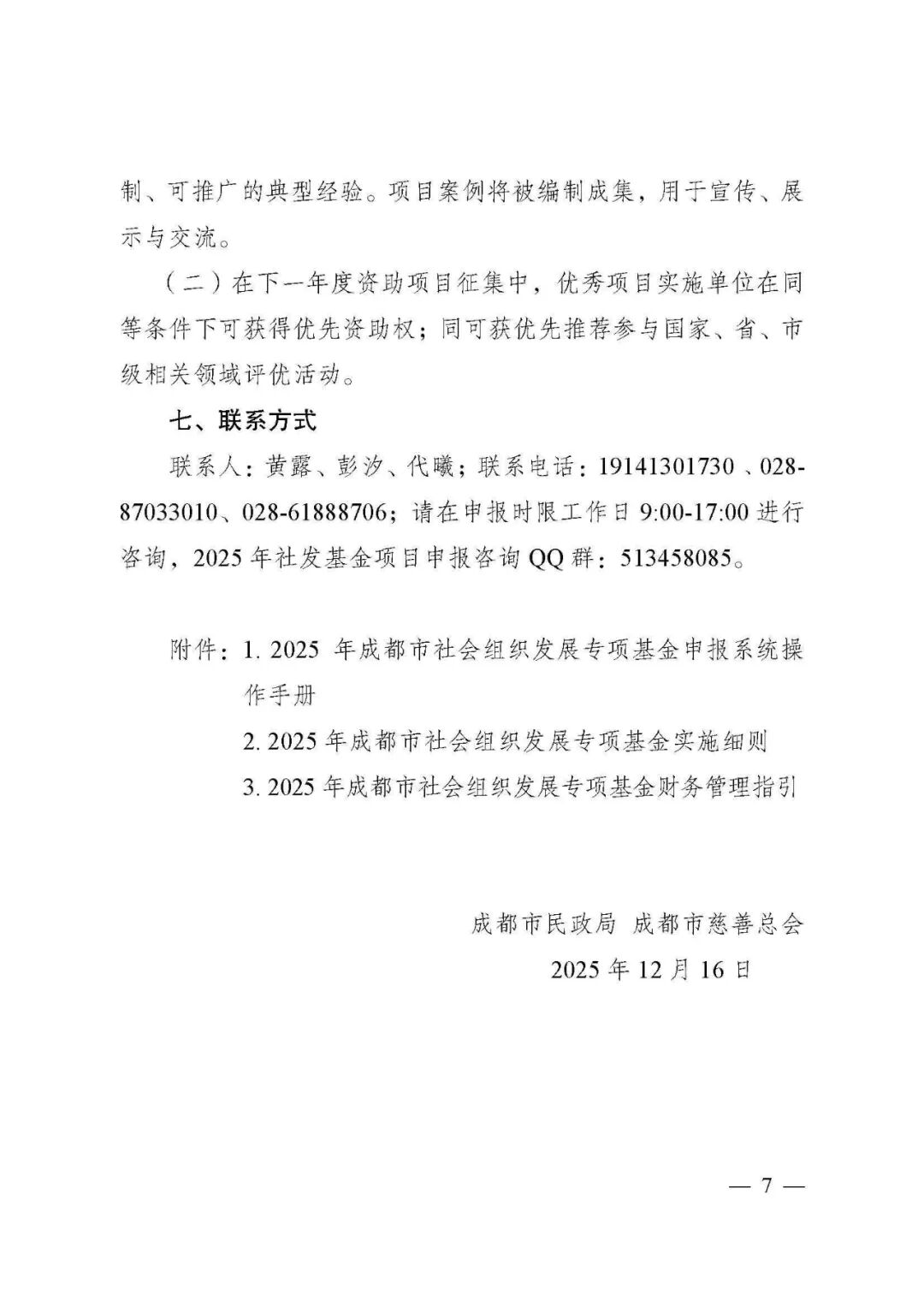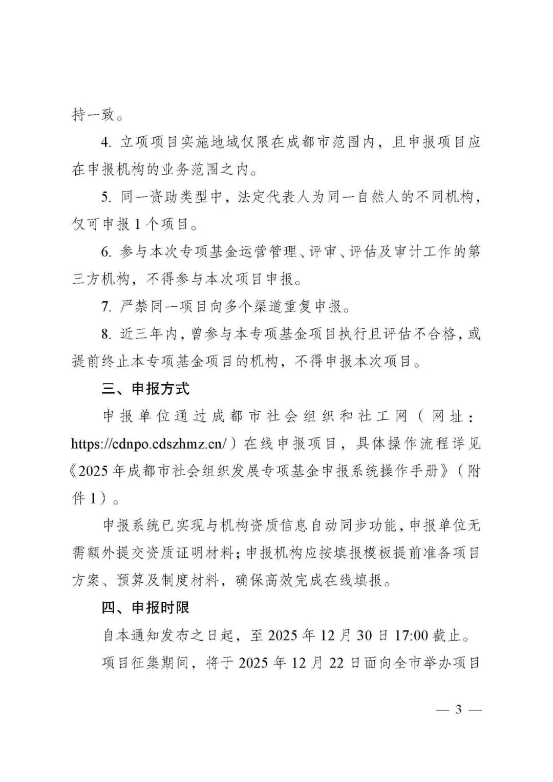 关于2025年度成都市社会组织发展专项基金资助项目征集工作的通知