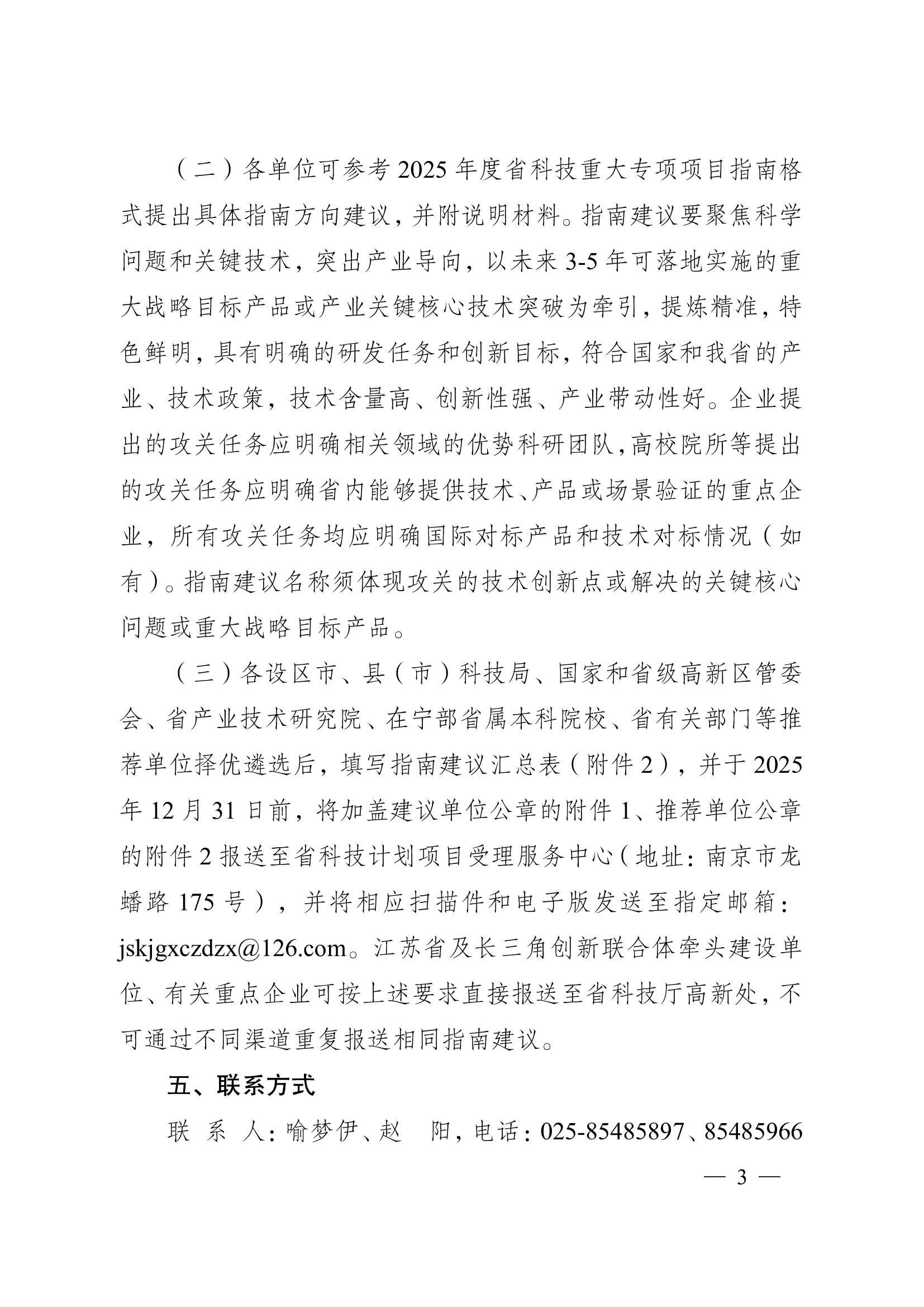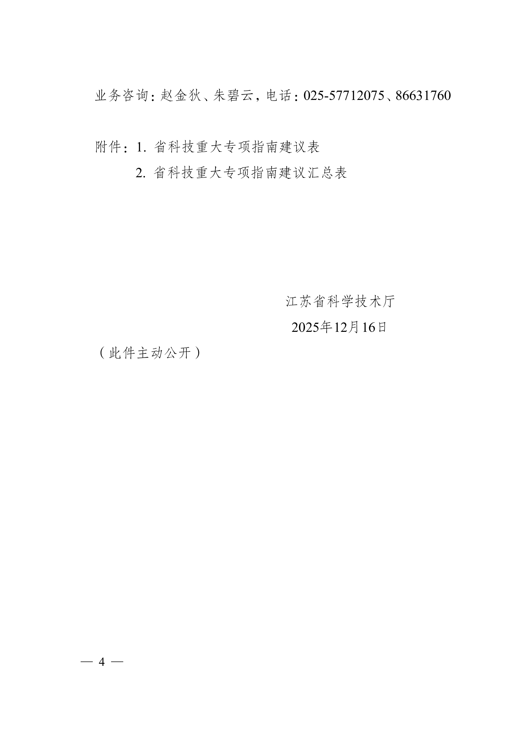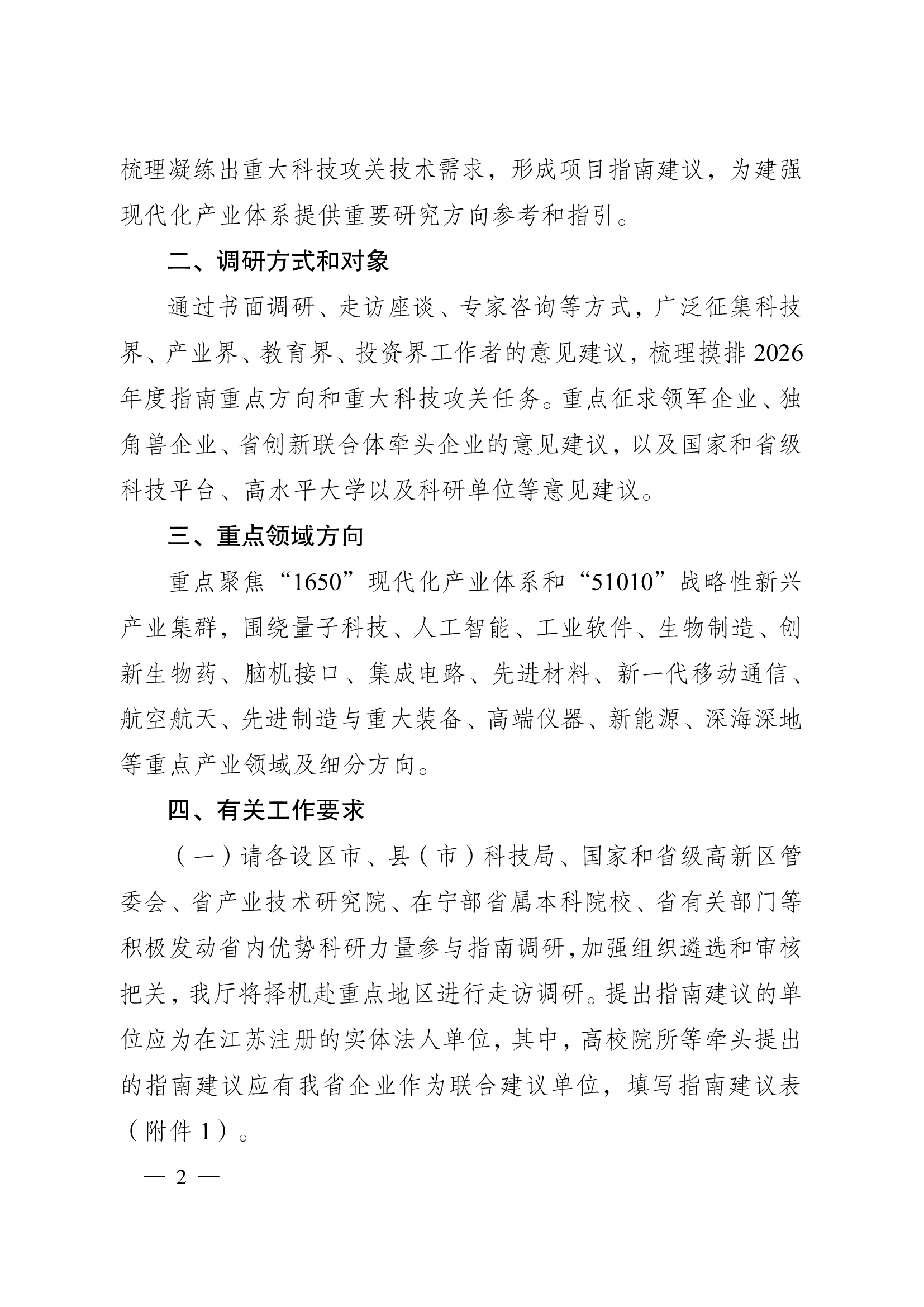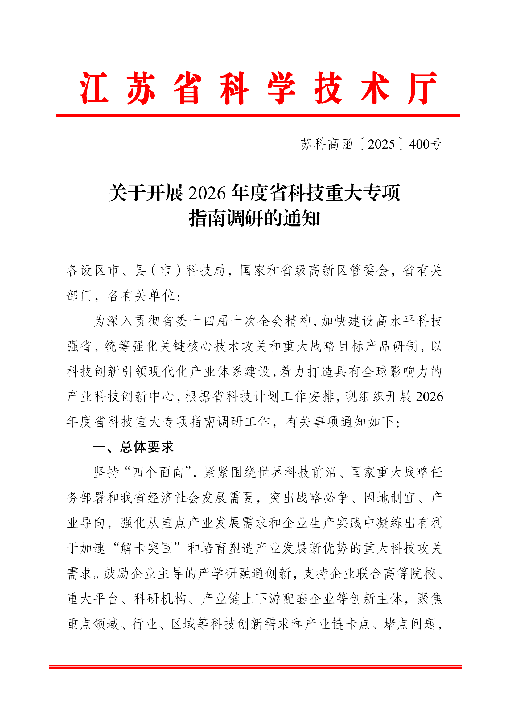 江苏省科学技术厅 关于开展2026年度省科技重大专项指南调研的通知