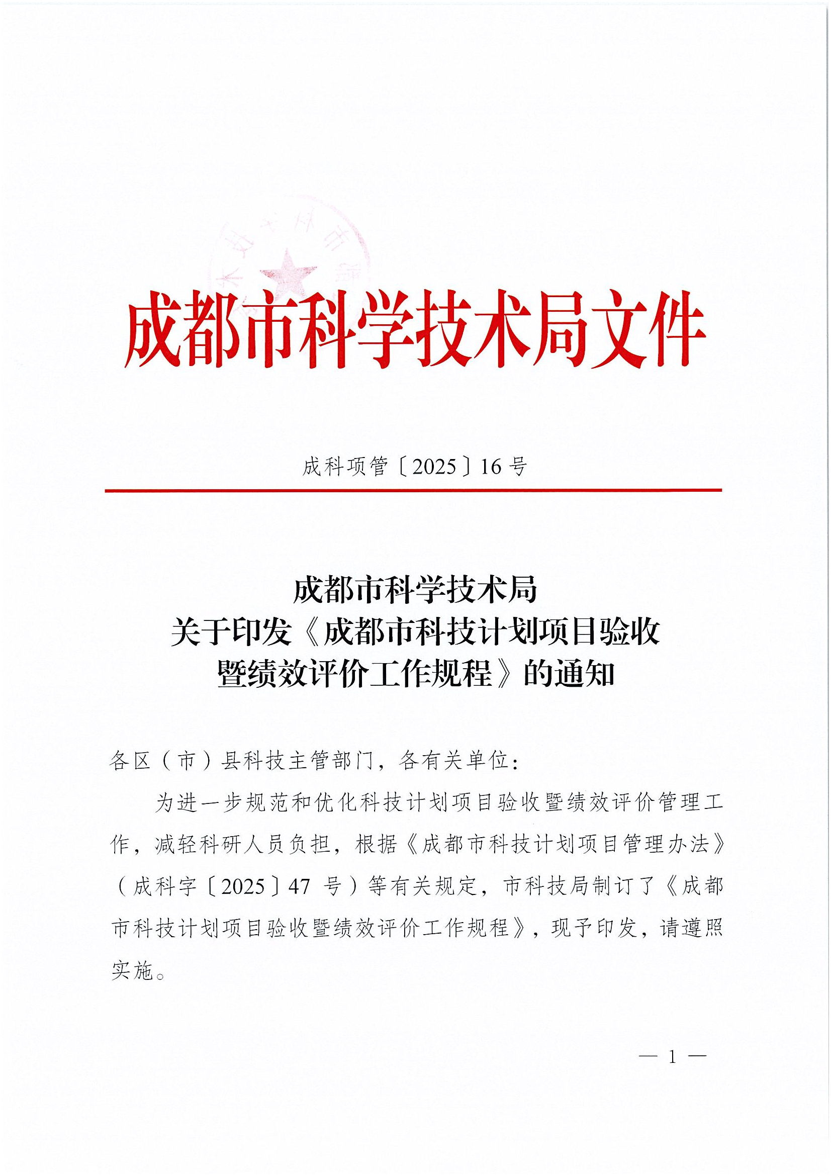 成都市科学技术局关于印发《成都市科技计划项目验收暨绩效评价工作规程》的通知(成科项管〔2025〕16号).pdf