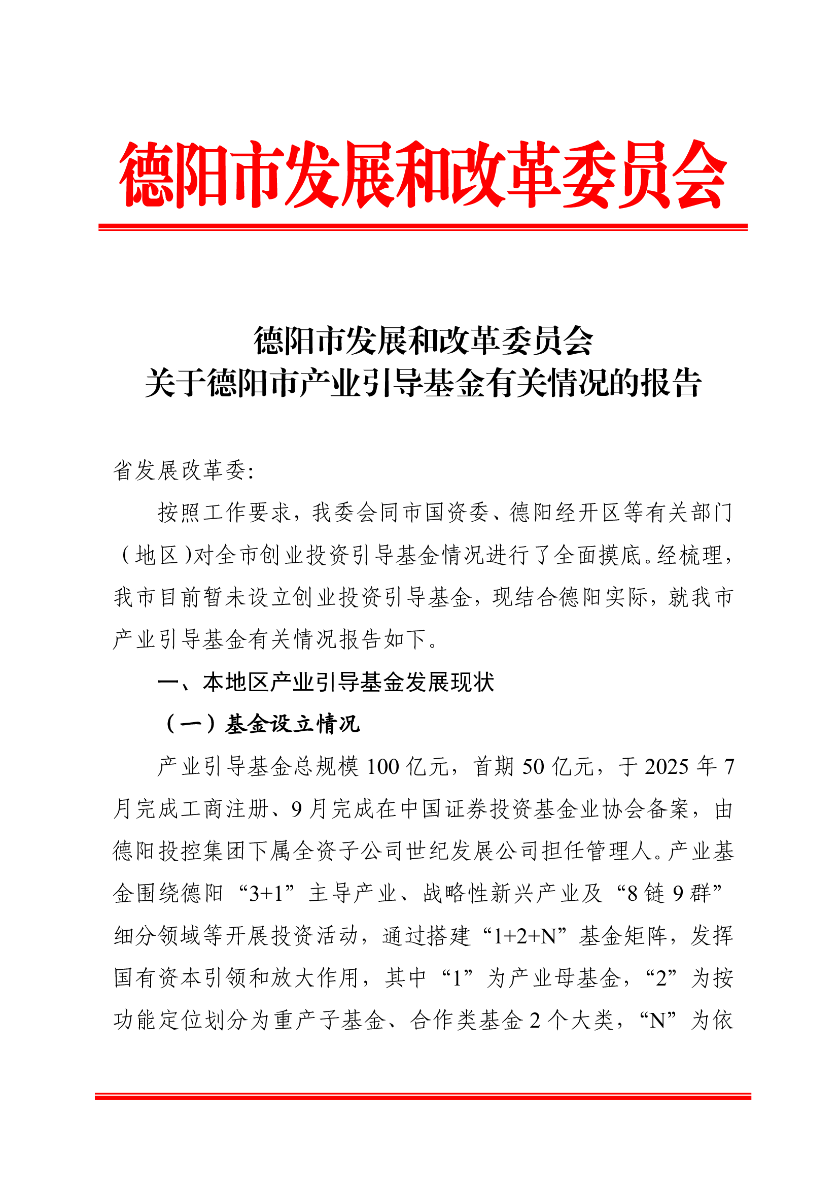 德阳市发展和改革委员会关于德阳市产业引导基金有关情况的报告.pdf