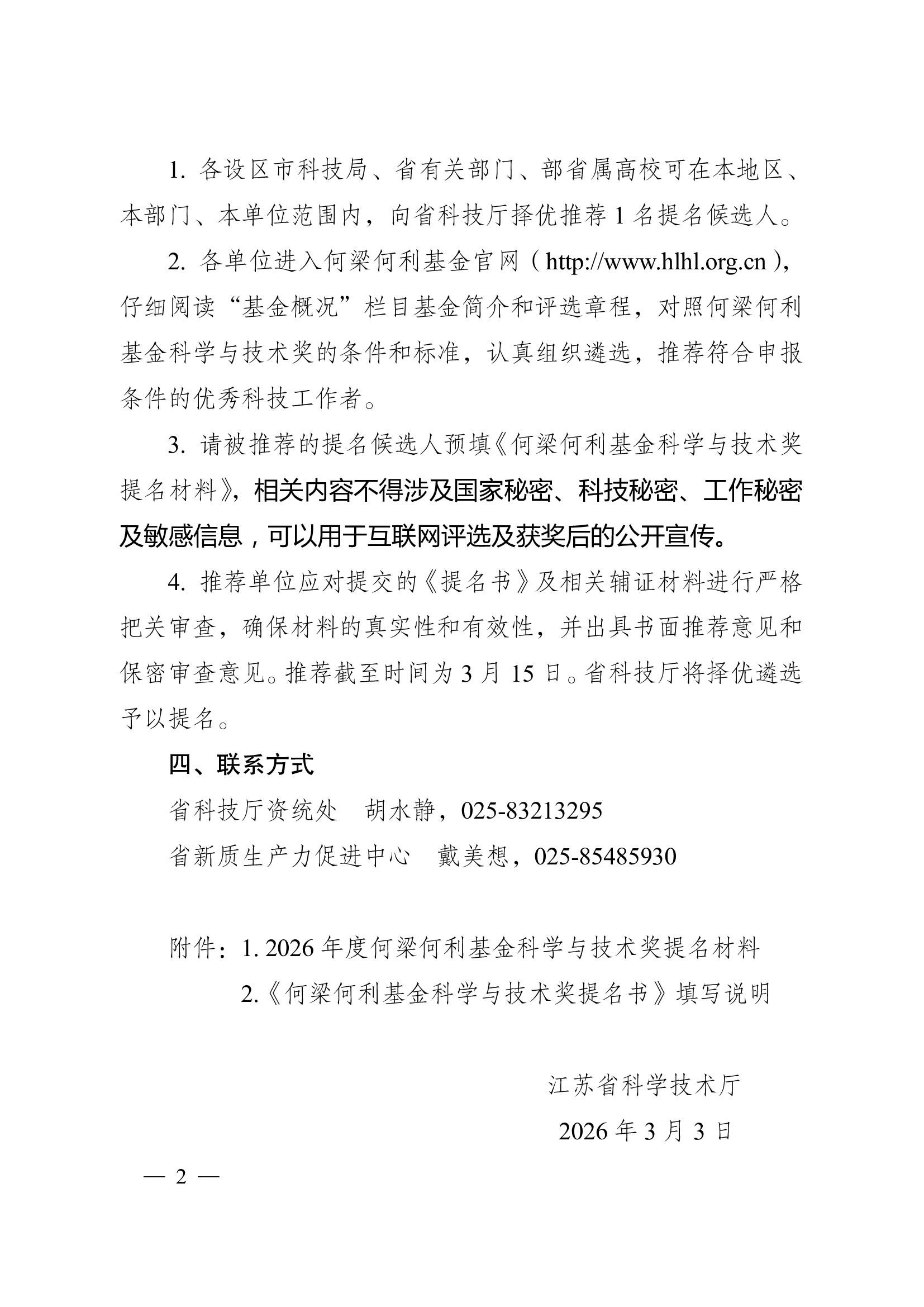 江苏省科学技术厅 关于推荐2026年度何梁何利基金科学与技术奖候选人的通知