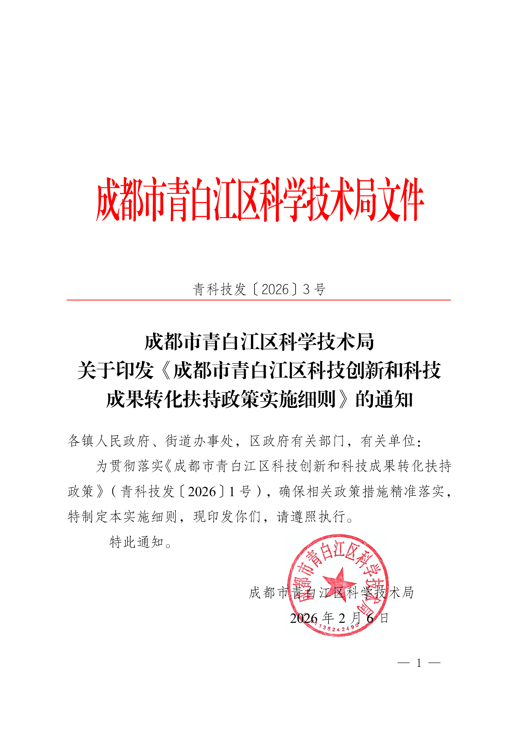 成都市青白江区科学技术局关于印发《成都市青白江区科技创新和科技成果转化扶持政策实施细则》的通知
