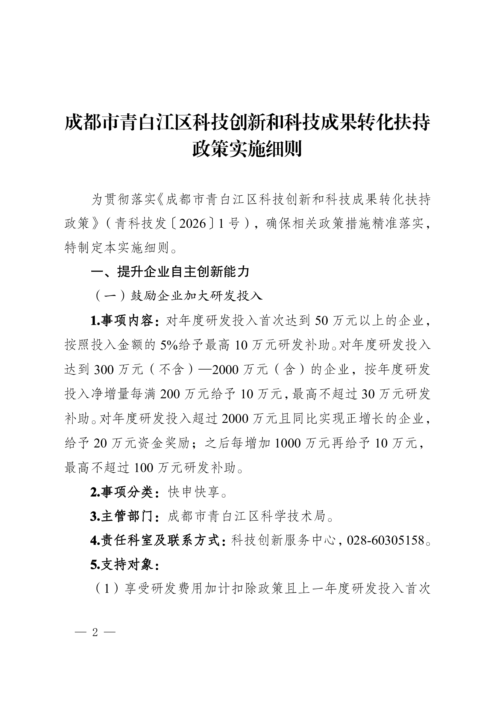 成都市青白江区科学技术局关于印发《成都市青白江区科技创新和科技成果转化扶持政策实施细则》的通知.pdf