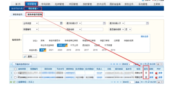 图10管理系统申报书(已提交纸件材料)状态显示图