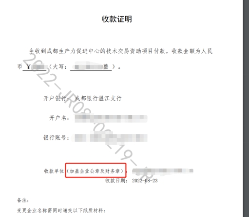 技术交易资助《收款证明》及“更名申请”业务请咨询成都生产力促进中心,电话:67172733。