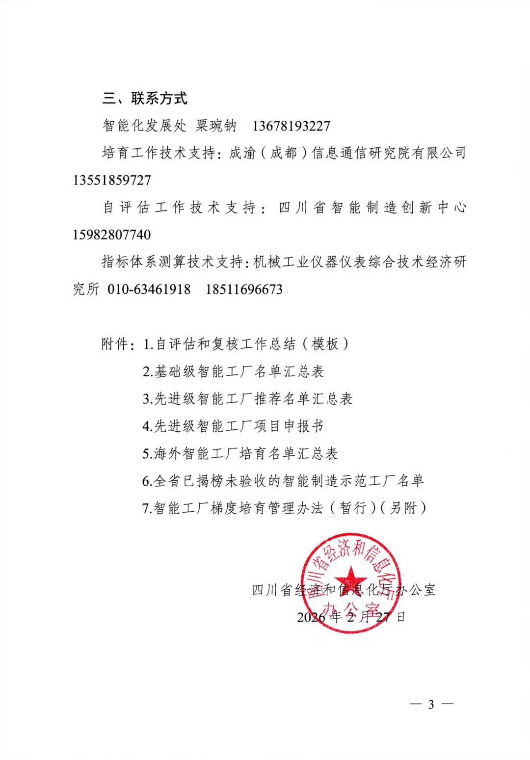 四川省经济和信息化厅办公室关于做好2026年度智能工厂梯度培育有关工作的通知》的通知