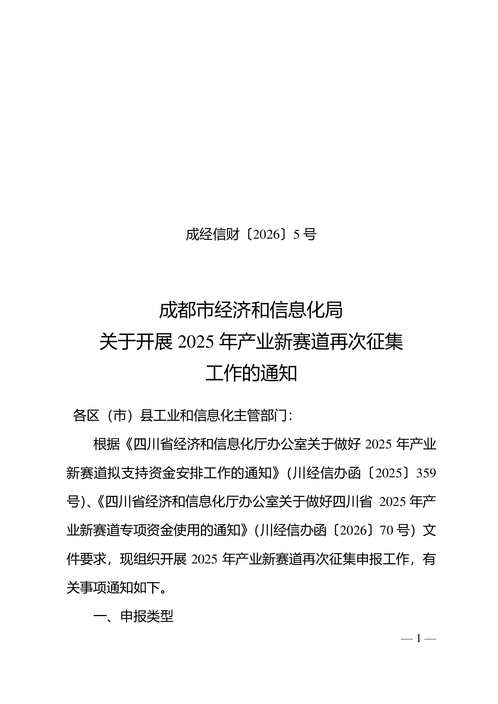 成都市经济和信息化局 关于开展2025年产业新赛道再次征集工作的通知
