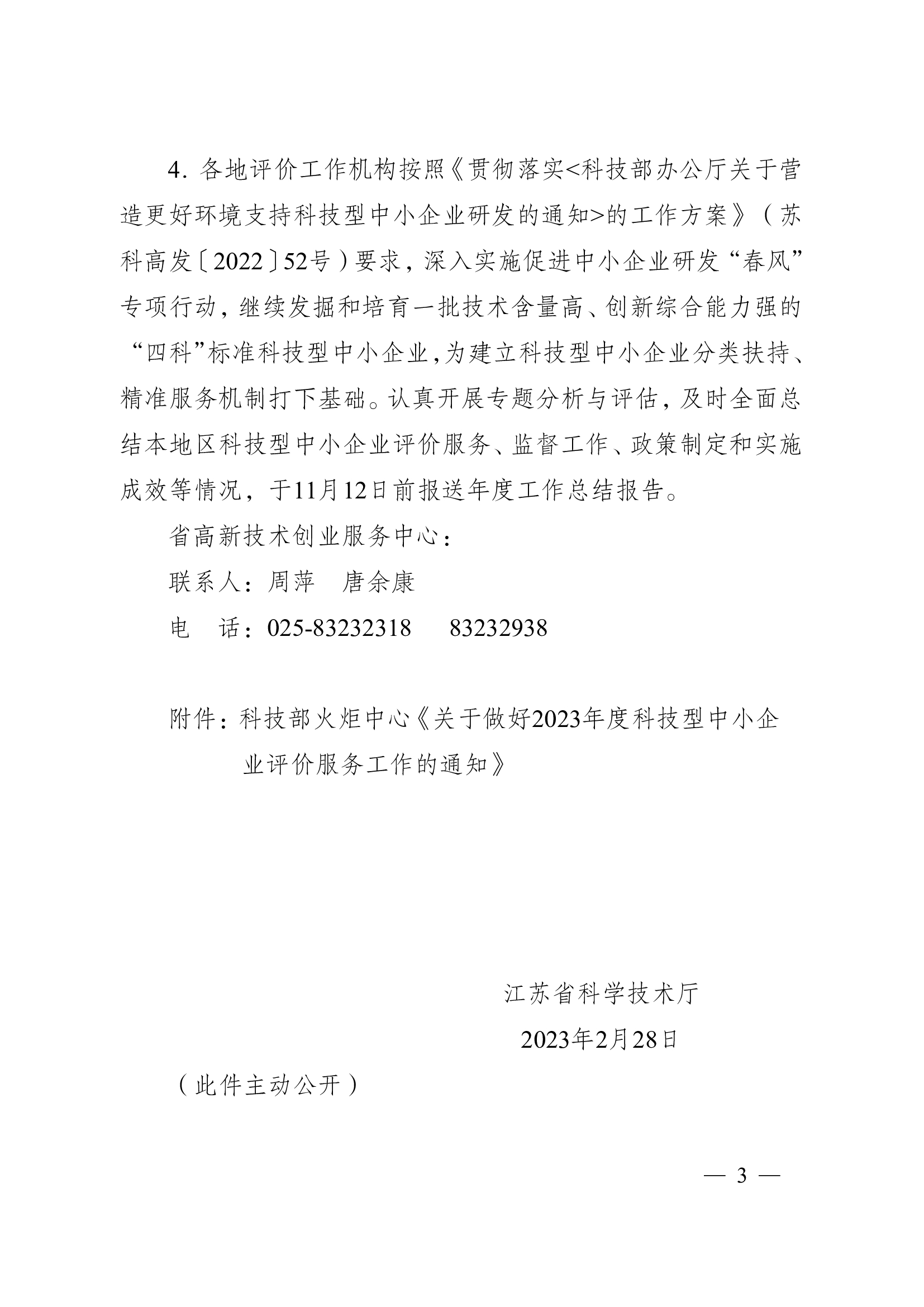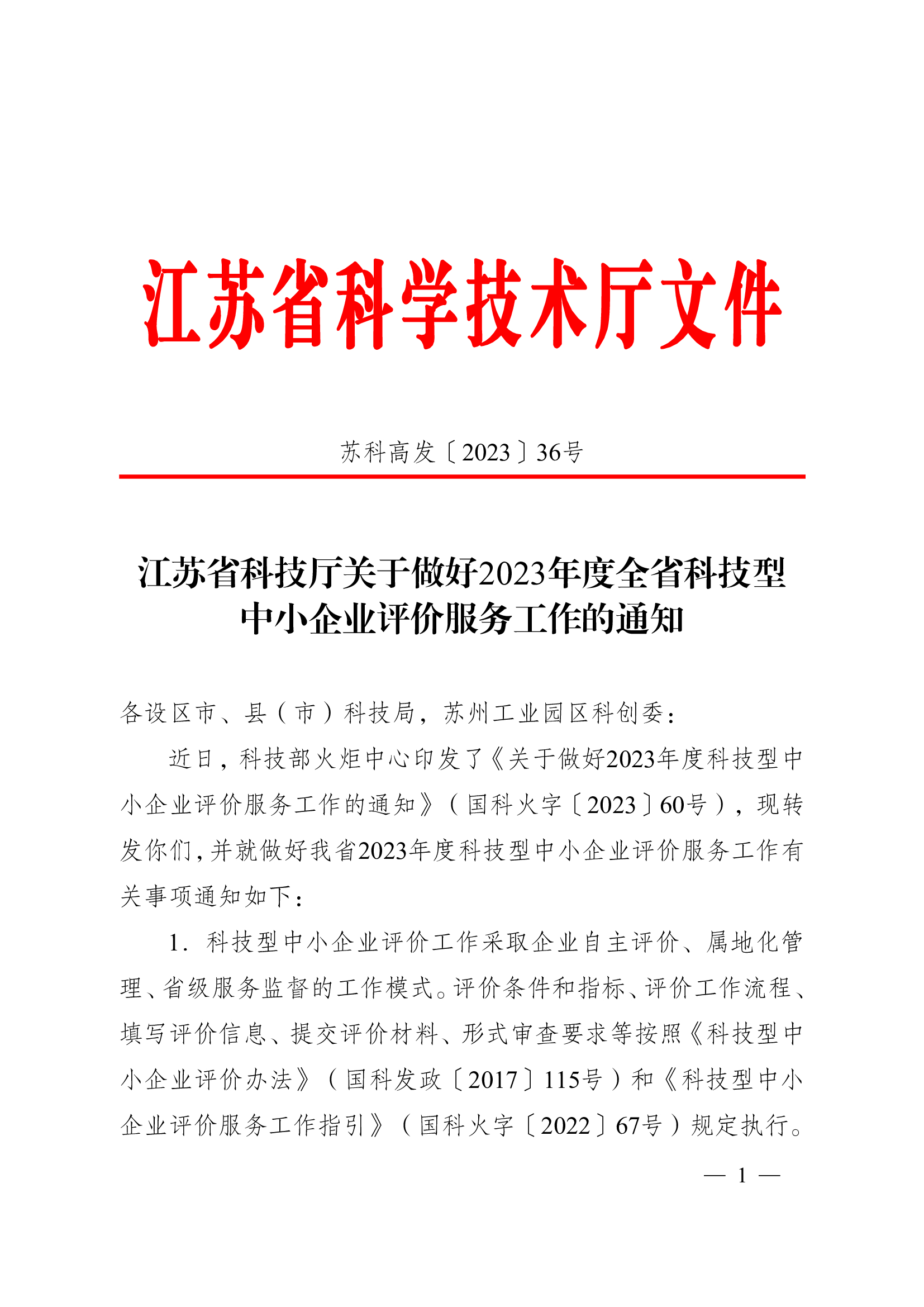 江苏省科技厅关于做好2023年度全省科技型中小企业评价服务工作的通知