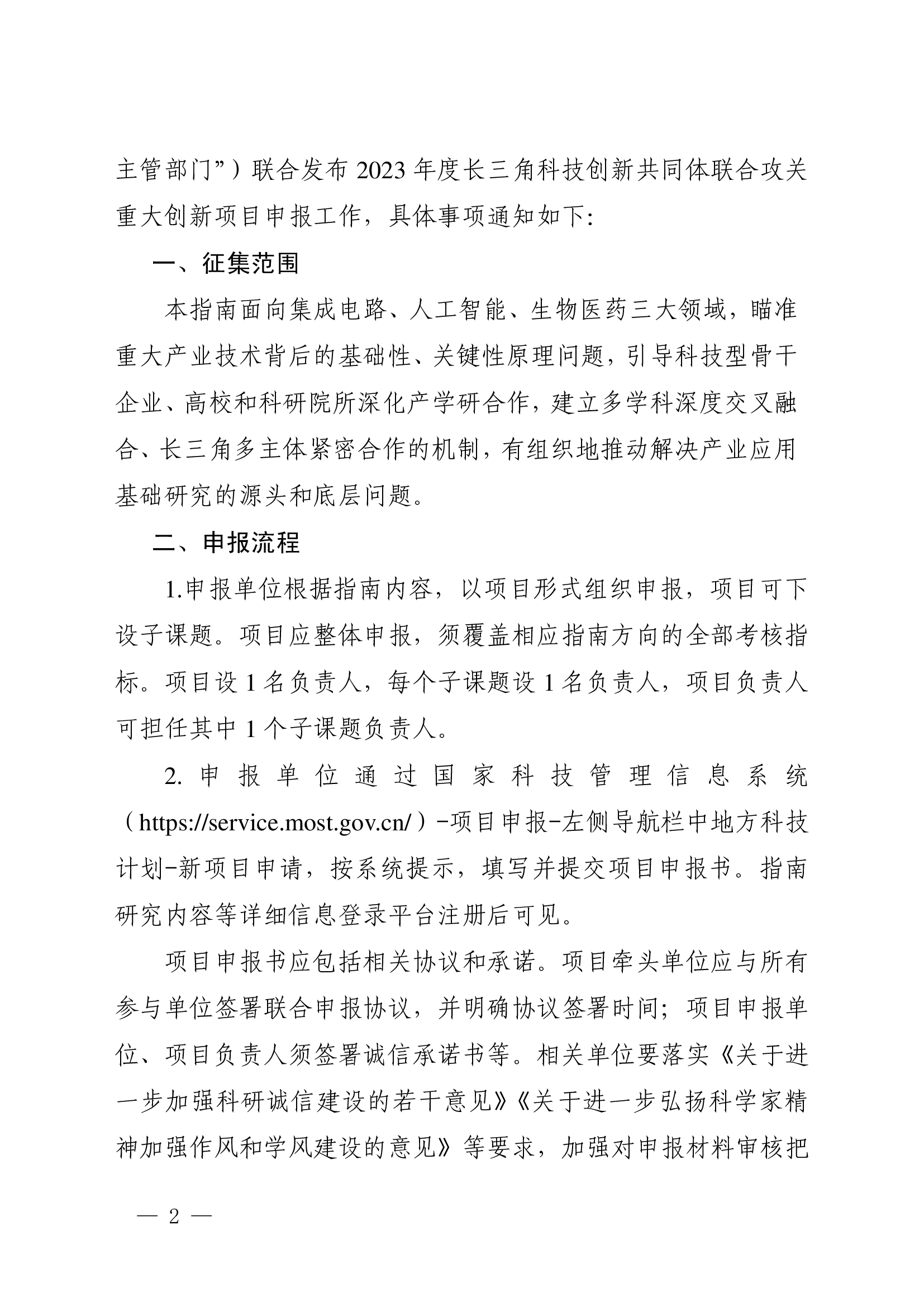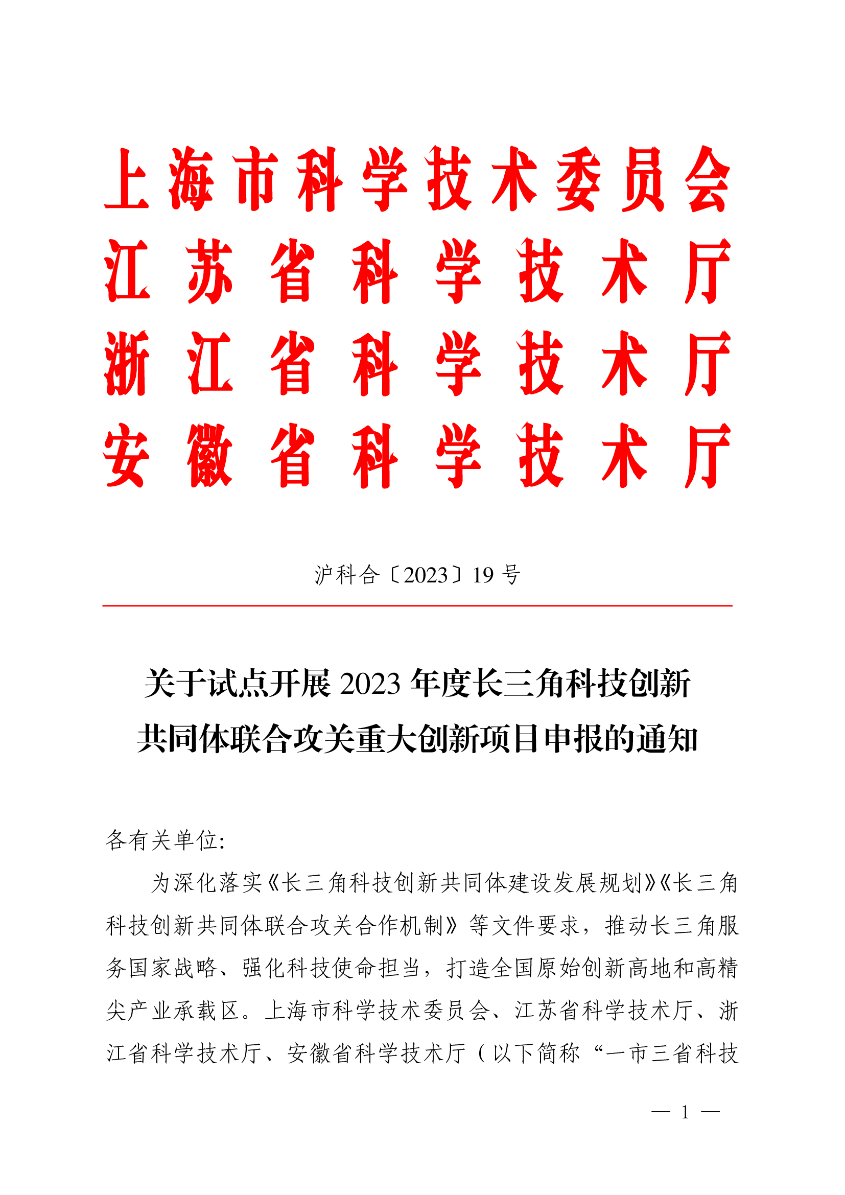 关于试点开展 2023 年度长三角科技创新共同体联合攻关重大创新项目申报的通知