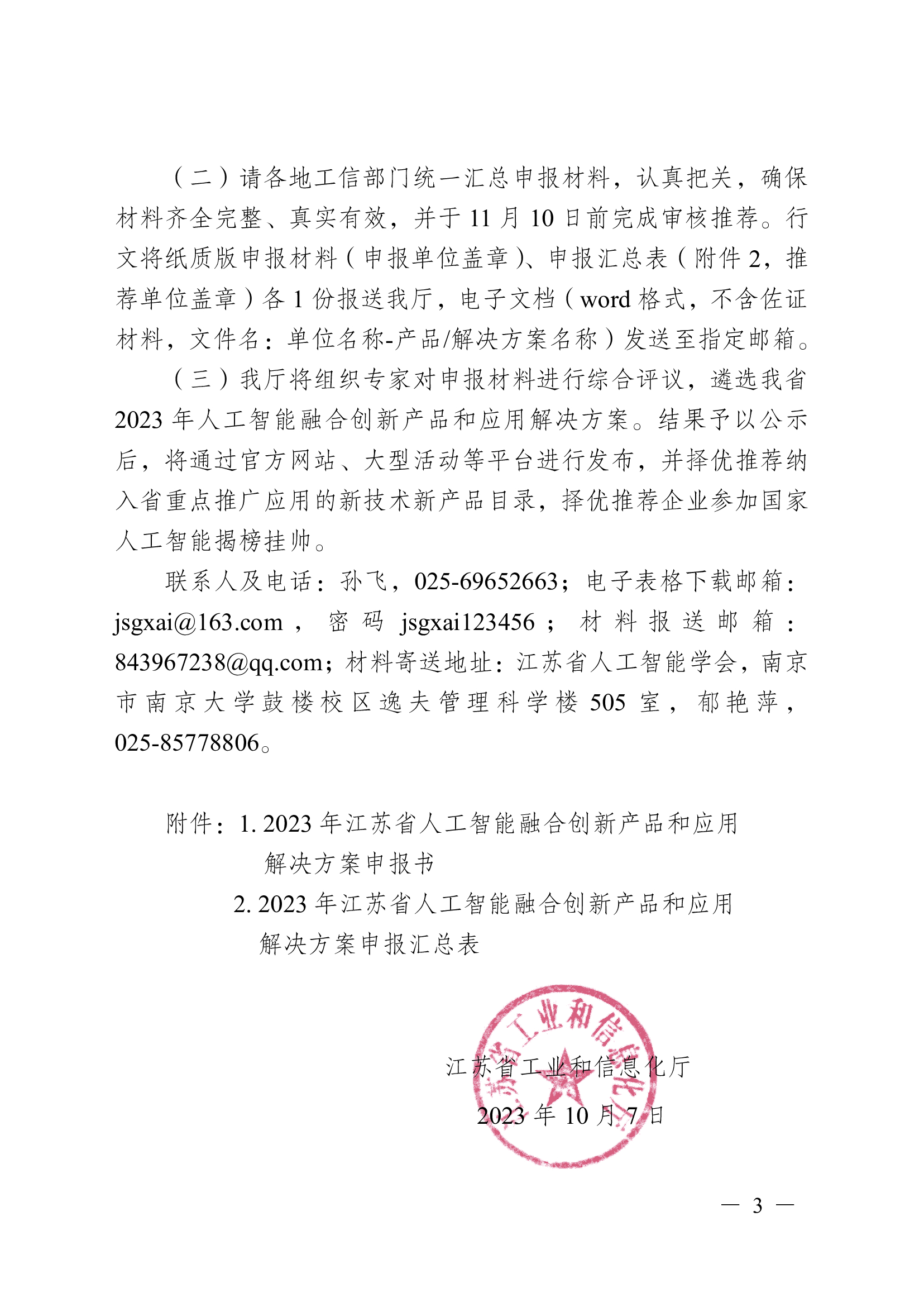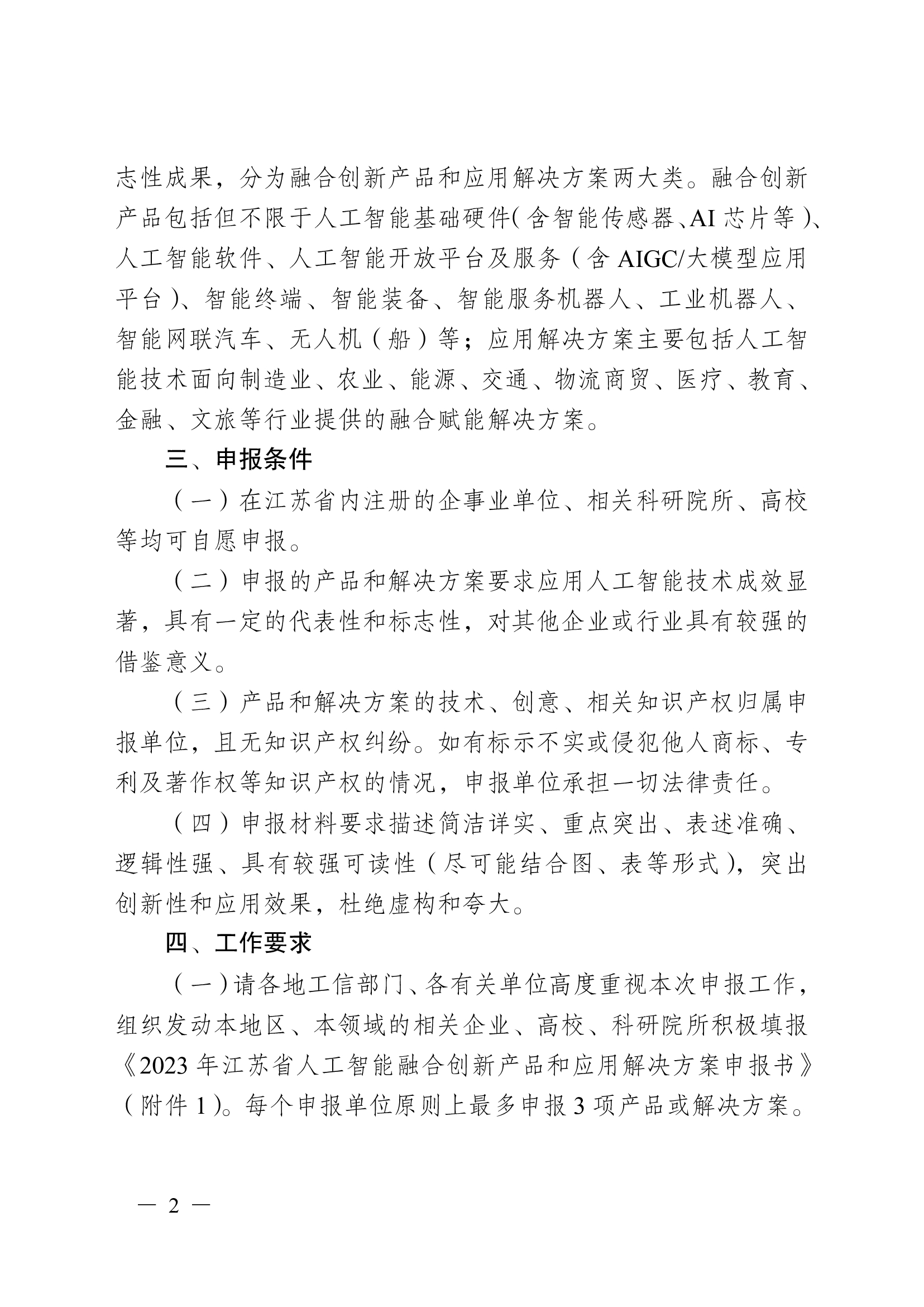 关于组织开展2023年江苏省人工智能融合创新产品和应用解决方案申报工作的通知