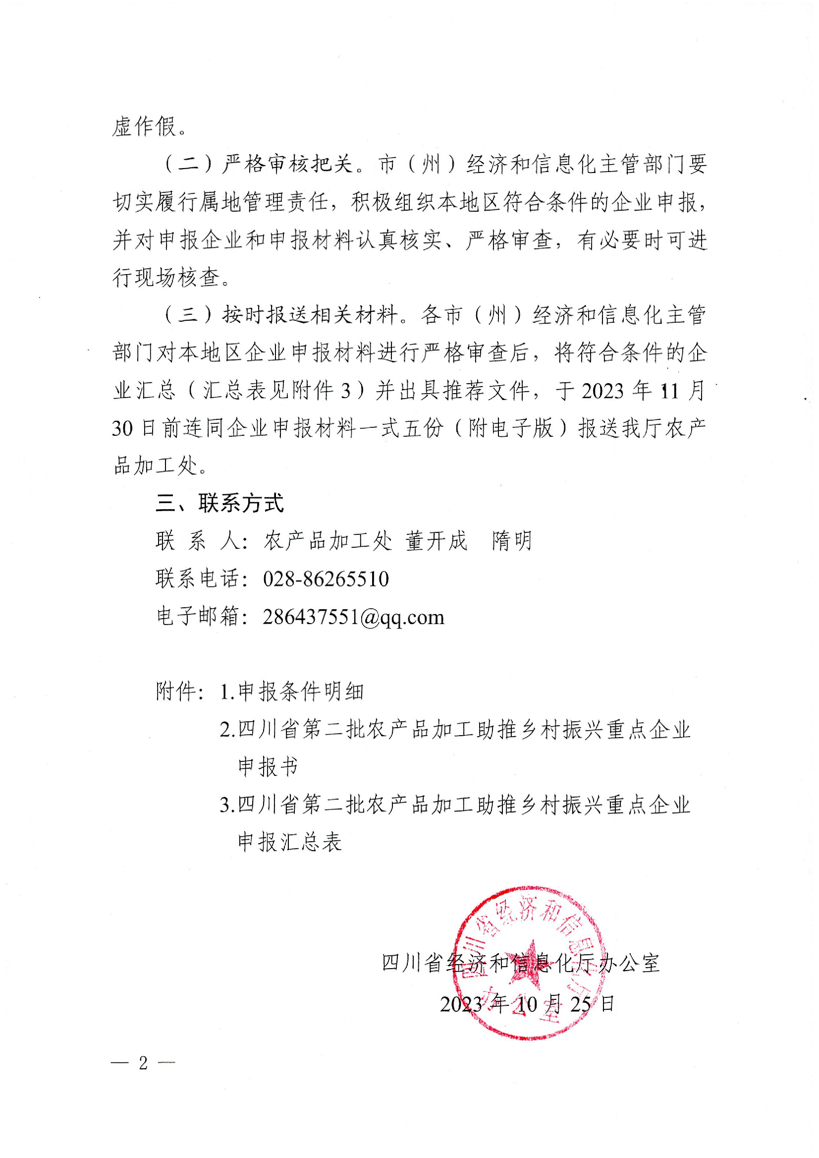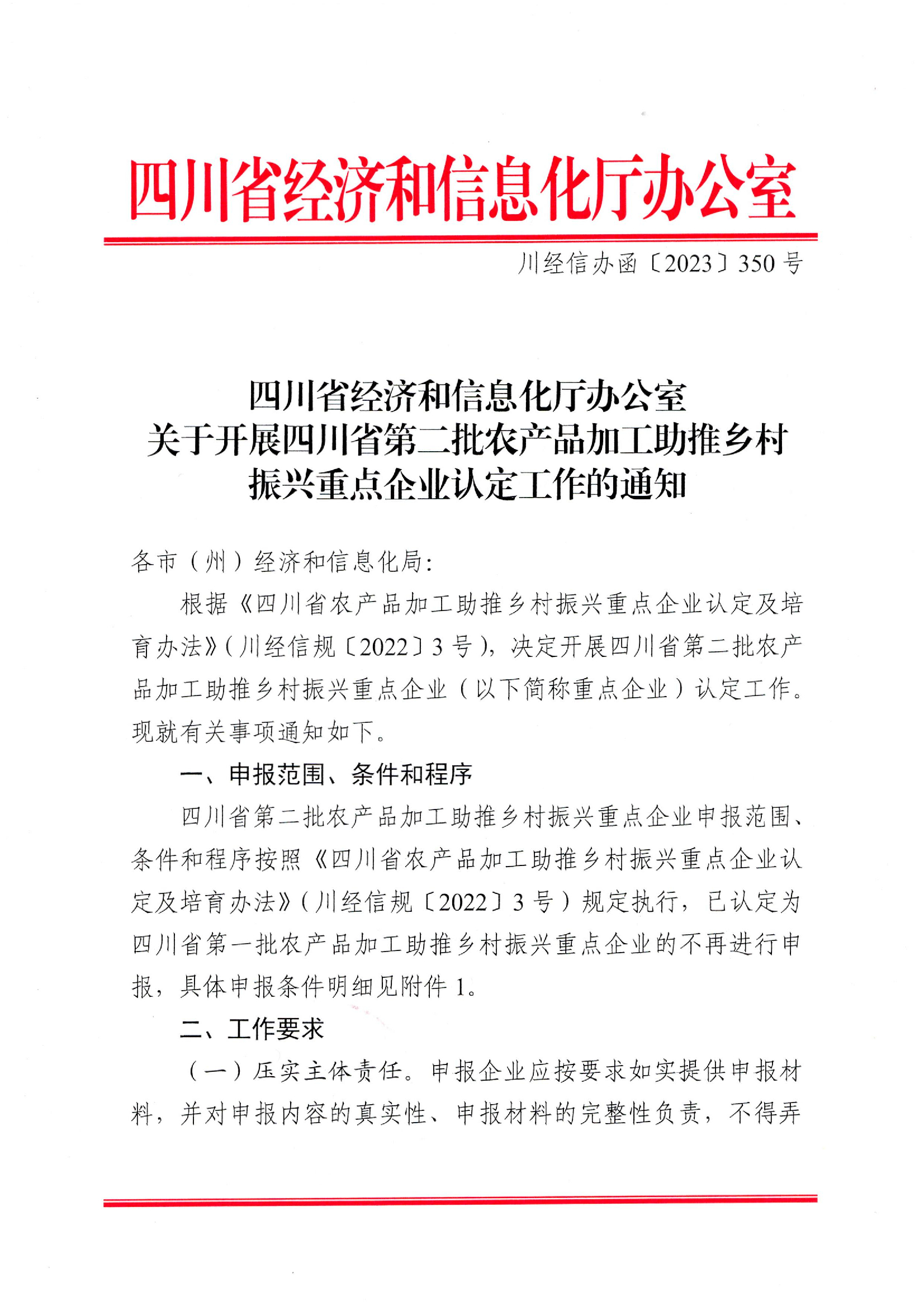 附件 关于开展四川省第二批农产品加工助推乡村振兴重点企业认定的通知
