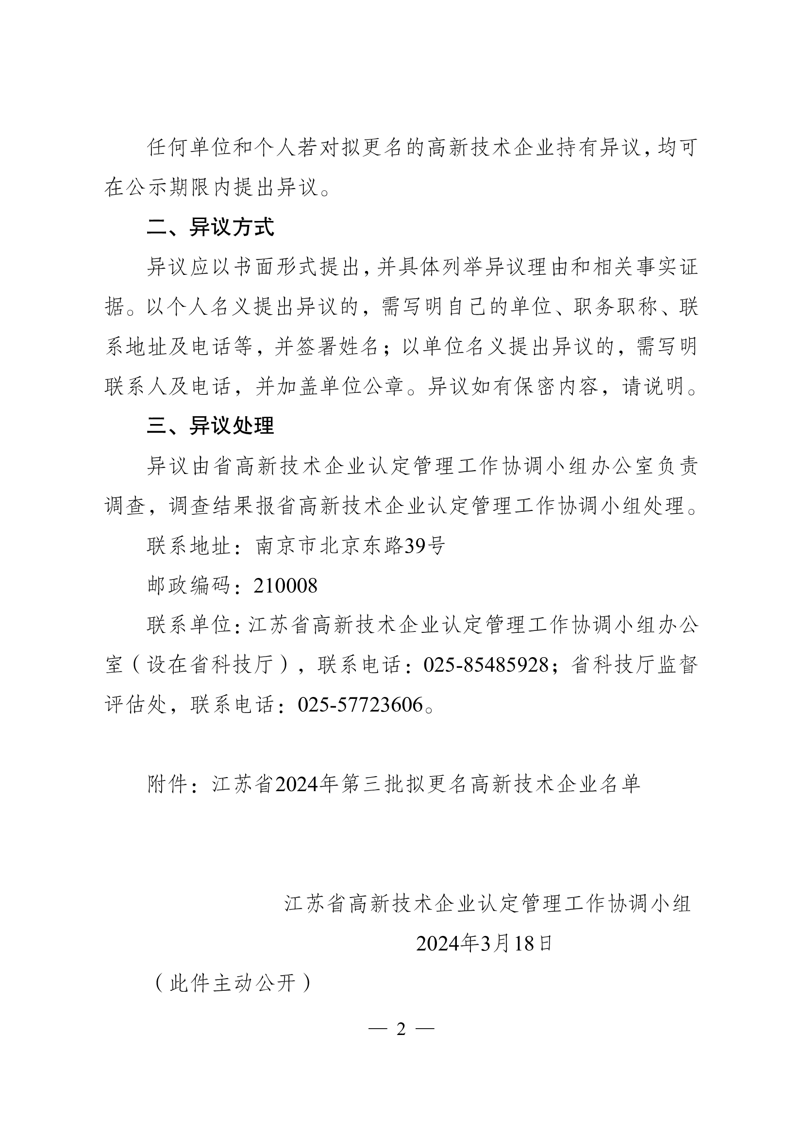 关于公示江苏省2024年第三批拟更名高新技术企业名单的通知