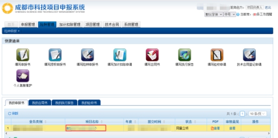图1项目负责人登录系统后查看项目示意图