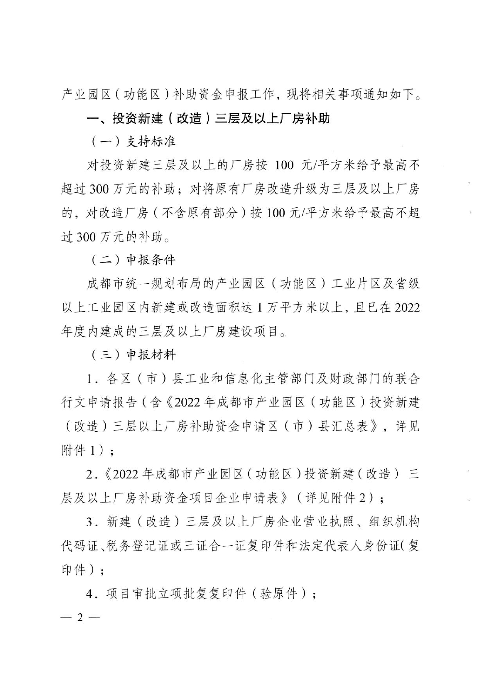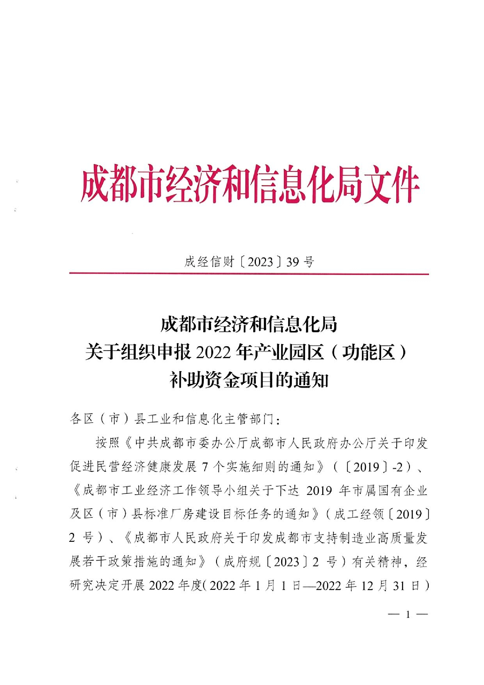 成都市经济和信息化局关于组织申报2022年产业园区(功能区)补助资金项目的通知
