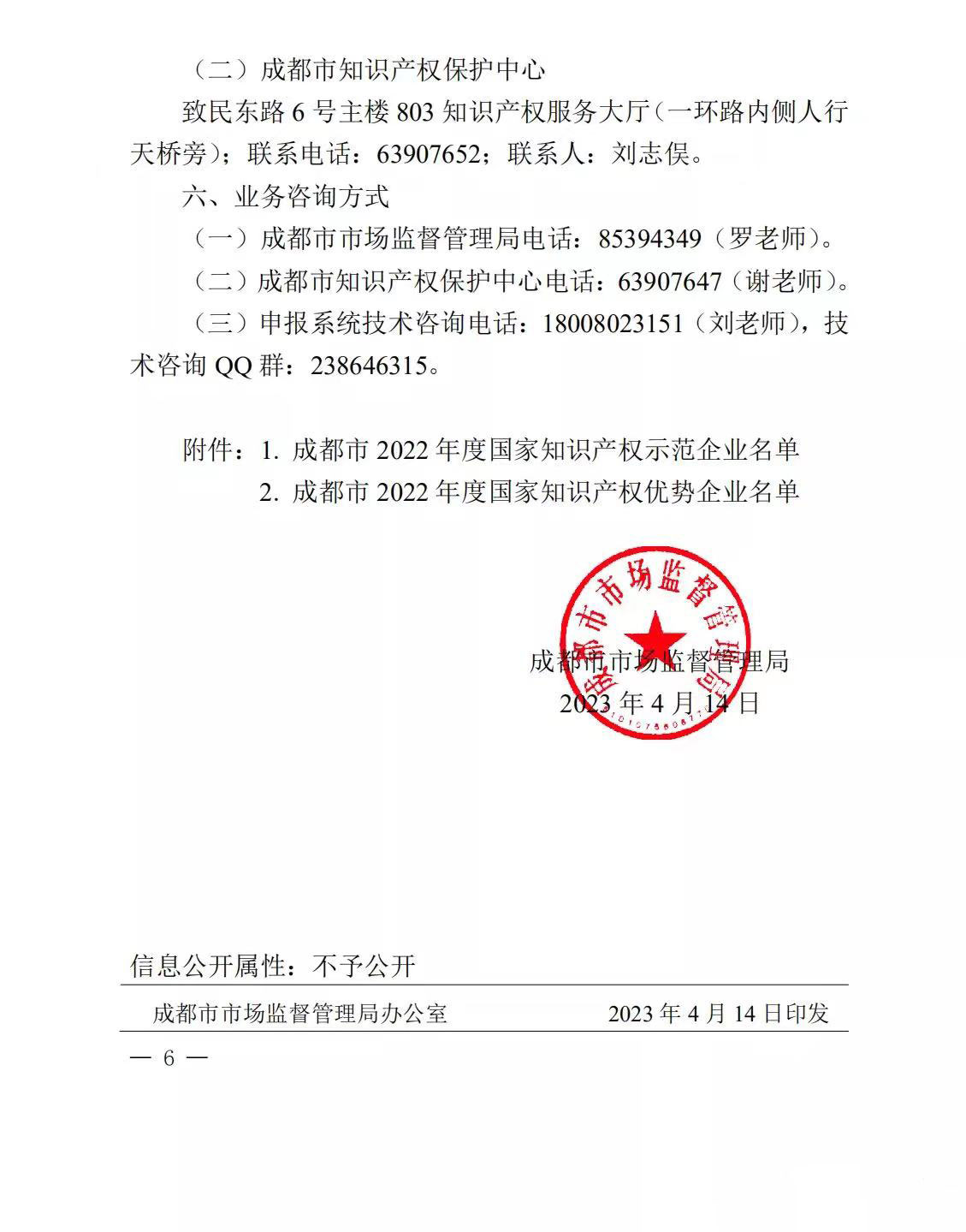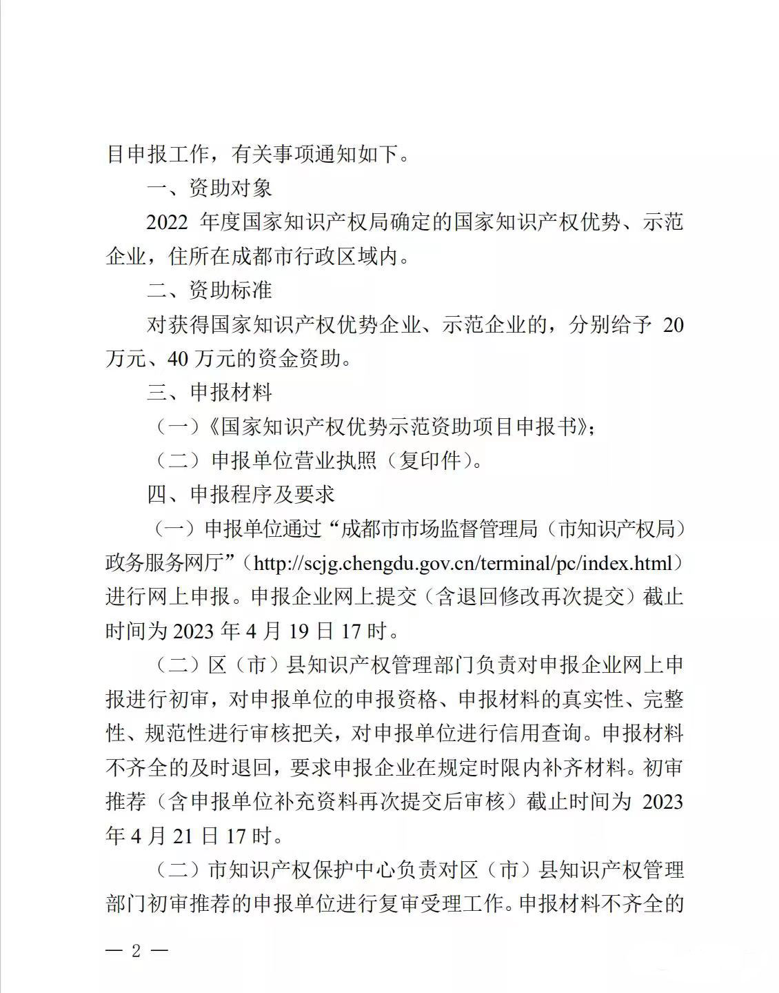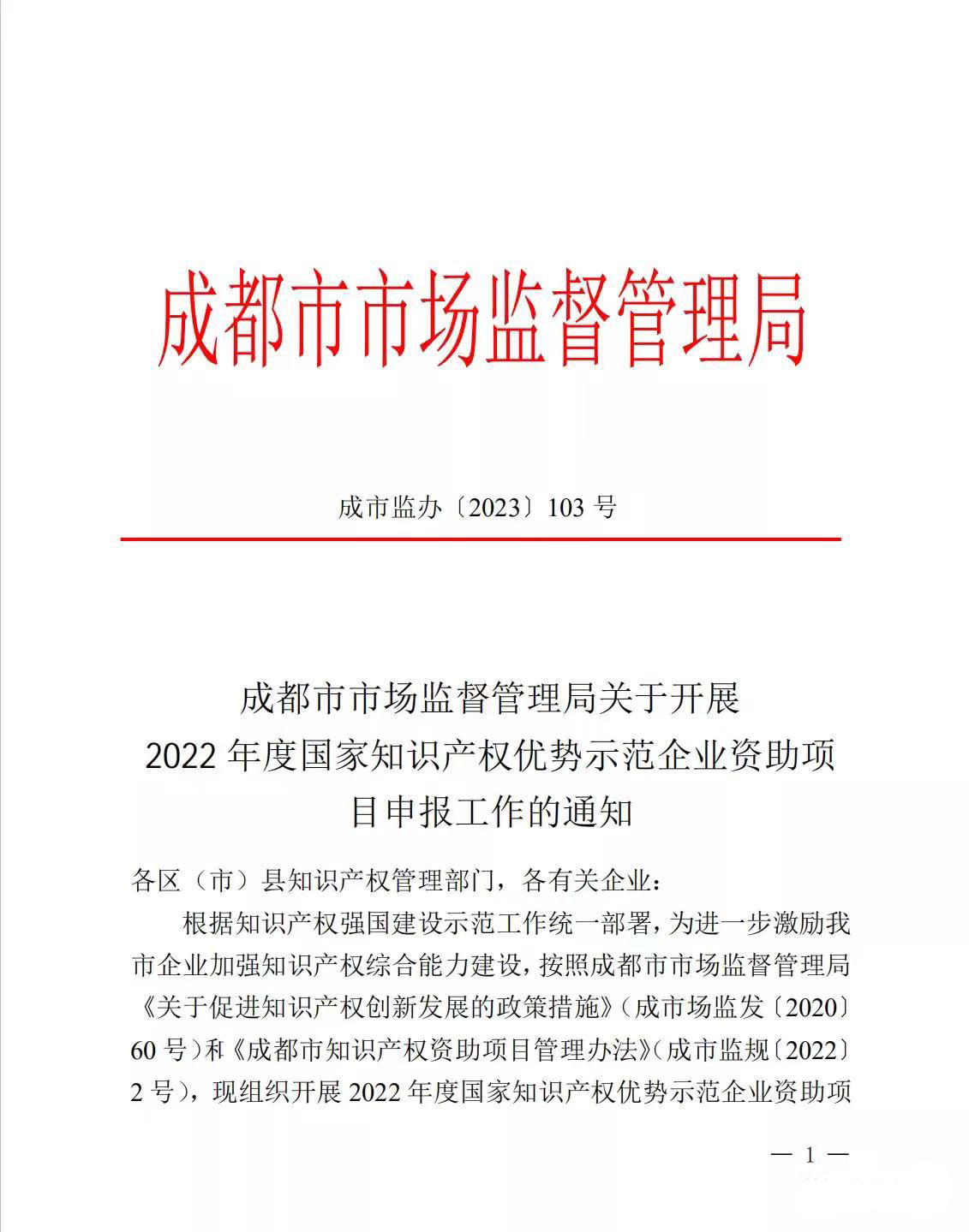 成都市市场监督管理局关于开展2022年度国家知识产权优势示范企业资助项目申报的通知