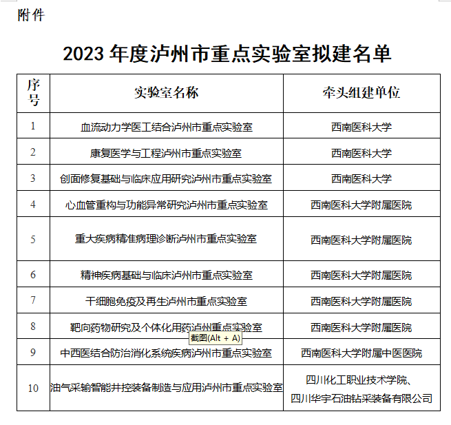 泸州市科学技术和人才工作局 关于2023年度拟建市级重点实验室公示