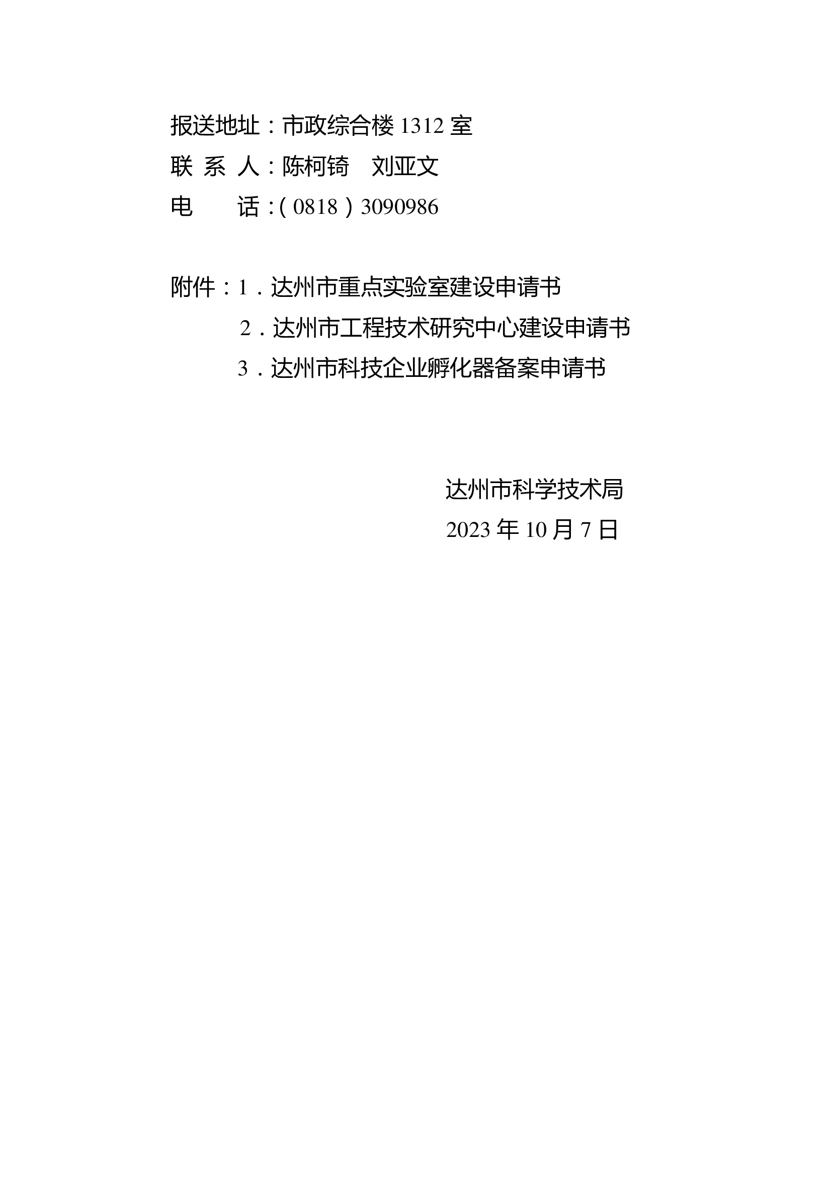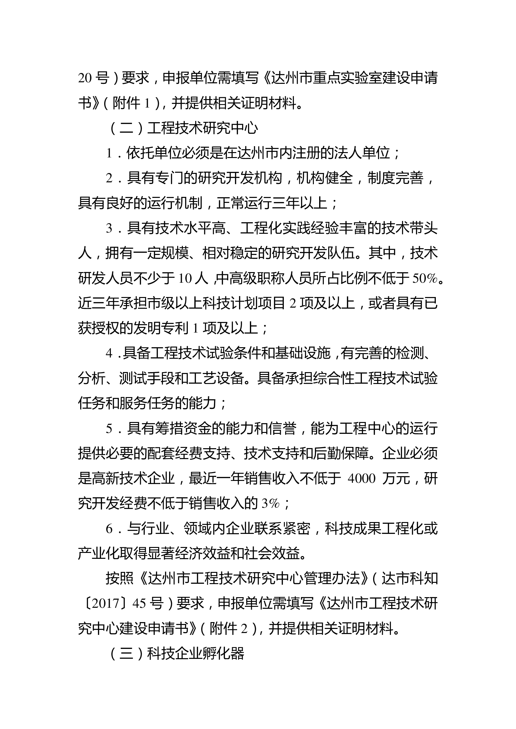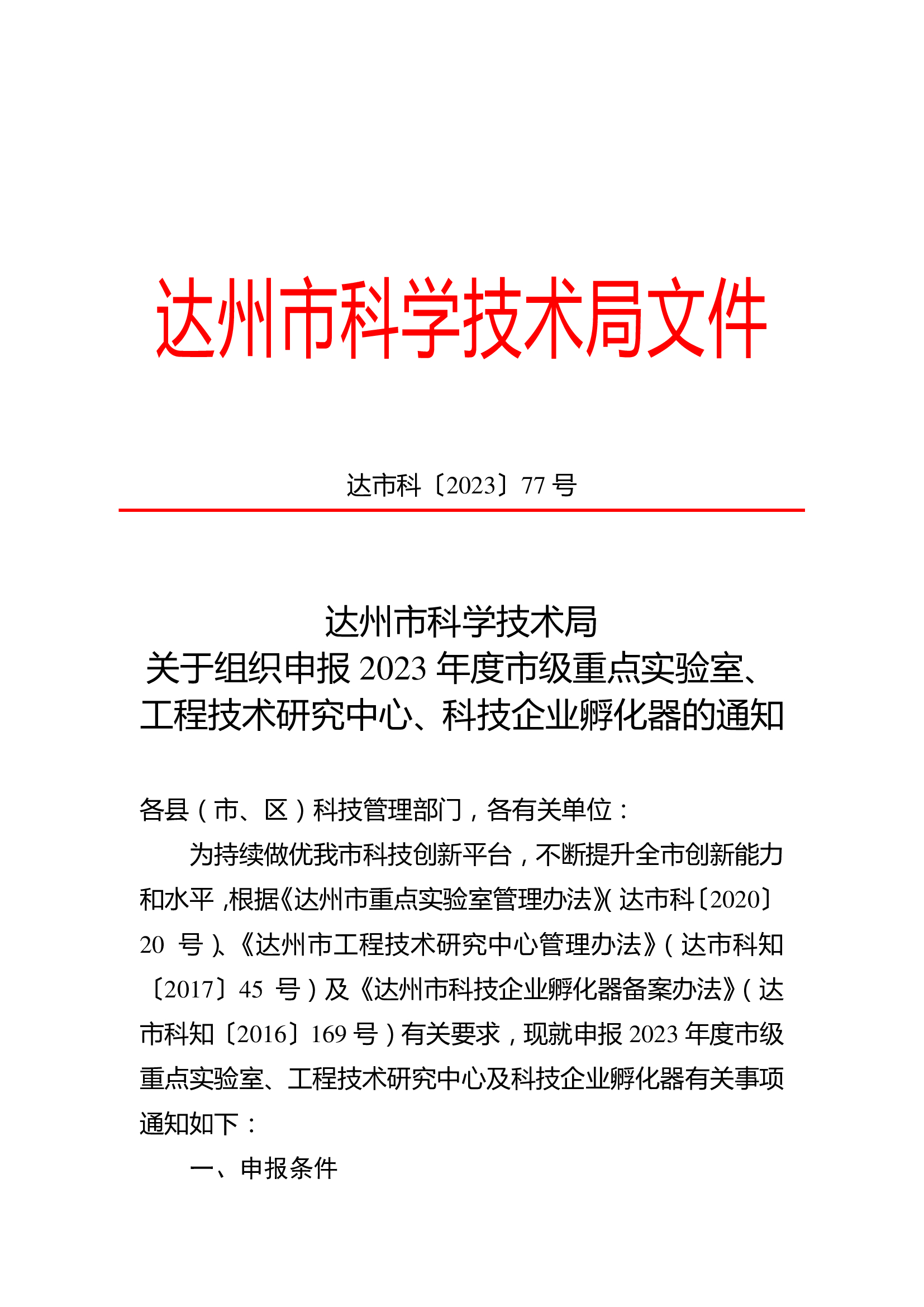 达州:关于组织申报2023年度市级重点实验室、工程技术研究中心、科技企业孵化器的通知