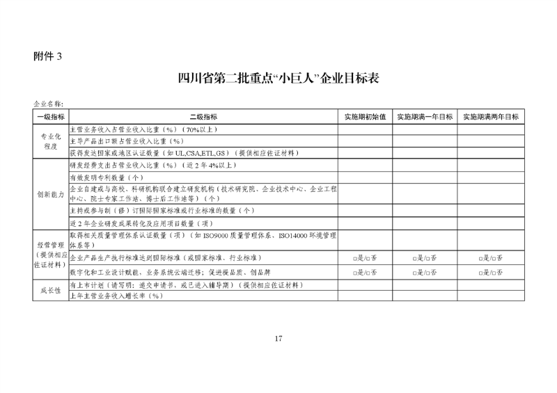 关于2017年四川省高成长型中小企业和行业“小巨人”企业拟培育企业名单的公示